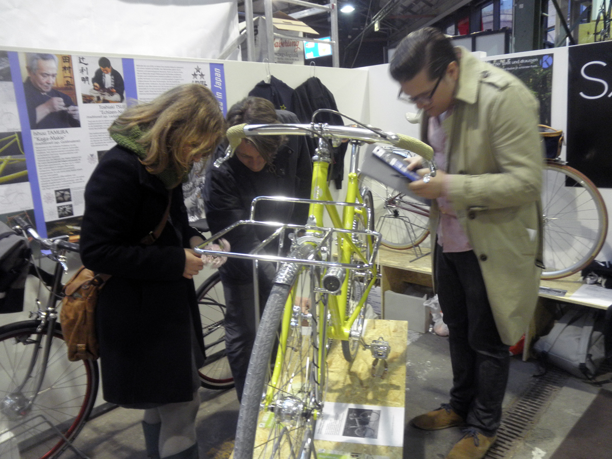 Am Tag 02 bekam ich aber eine nette Vertretung für 3 Stunden, so dass ich in der Halle umlaufen und andere Aussteller anschauen konnte. Eine gute Mischung von recht unterschiedlichen Aspekte um das Leben mit Fahrrädern. Zurück zum Stand, es gab wieder nettes Gespräch mit vielen Besuchern. Ich war bewegt von der begeisterung von Mädels, genauso von der versierten Kennern der Materie. Ich habe nicht damit gerechnet, dass doch soviele Menschen sich mit der alten französischen Fahrradkultur wie Fahrradkonstruktion beschäftigen. Das alles hat mich sehr ermutigt und glücklich gemacht. Danke an alle, die zum Stand kammen. Und auch Danke an unsere netten Standnachbarn. Ich denke, daß Fahrrad die Welt tick netter und uns ein wenig glücklicher machen kann. Dafür arbeitet man doch gerne, gel.