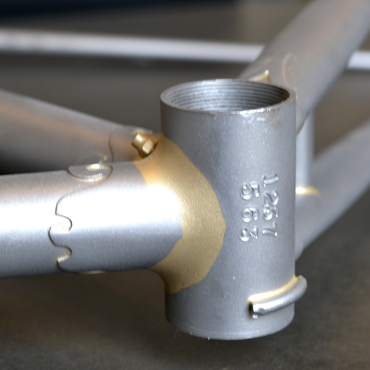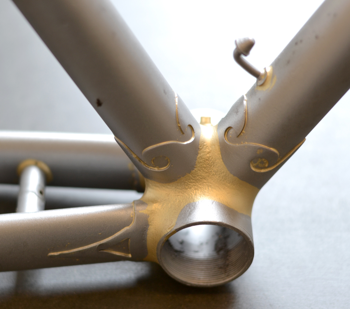 Manchmal wird diese Technik so beschrieben, daß Blech in Form geschnitten wird und um das Rohr gewickelt und gelötet wird. Diese Machart ist sehr selten, denn es ist schwer, so die feine Details beim Löten anliegen zu lassen. Meistens wird ein Rohr mit passend größerem Durchmesser in Form geschnitten und dann über das Rohr gestülpt und gelötet. Deshalb sieht man auch hier an Beispielfotos(Claud Butler New Allrounder 1956) keine Nähte.
