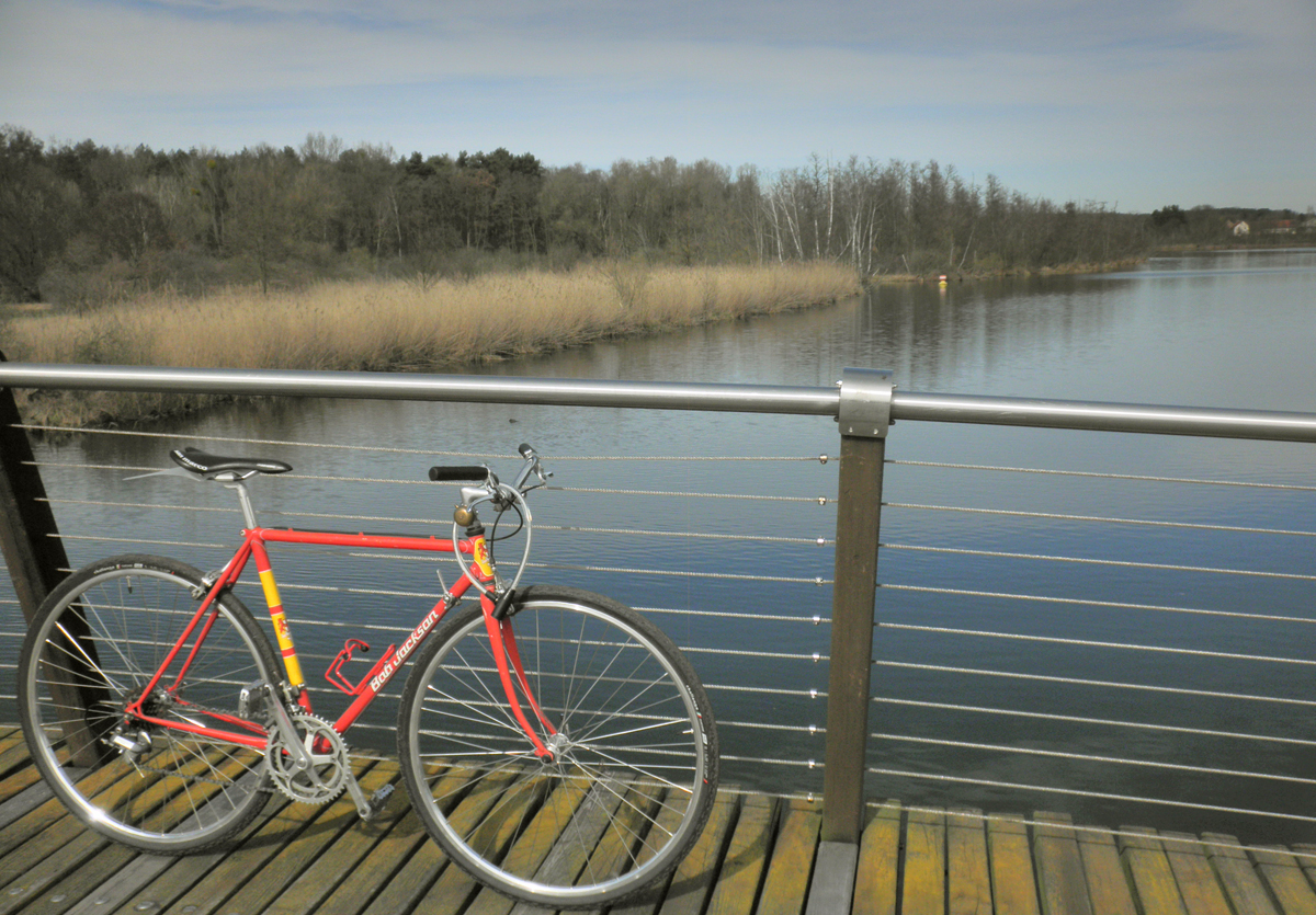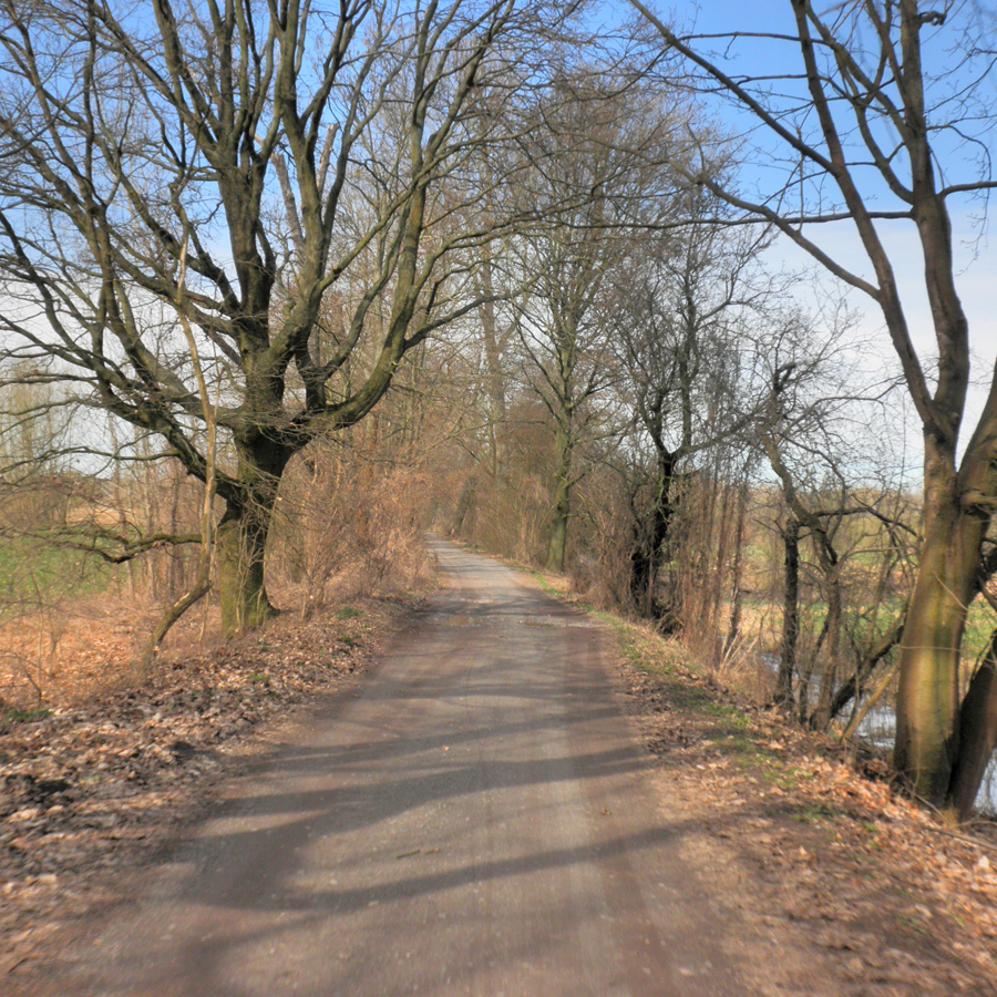 Havelland ist, wie Oderbruch, neues Land, das von Menschen mit viel Mühe urbanisiert worden ist. Es wird intensive Landwirtschaft betrieben, hier gibt nicht viel Wälder. Trotzdem ist der Ursprung als Sumpf noch sehr gut erkennbar. Überall verlaufen Kanäle, die ursprünglich für die Trockenlegung der Sümpfe gelegt worden sind. Es gibt immer noch viele Sumpfwiesen, Luch, welche für die Naturschutz heute eine große Bedeutung bekamen. Die Feldwege hier sind meist gerade, sehr gerade, Landschaft ist flach, sehr flach. Langweilig zum Radeln? Natürlich ist das Radeln in Uckermark abwechselungsreicher. Für Tagestour finde ich ganz nett. Prächtige Eichenallee, viele Pappelalleen, unter diesen Bäumen eingentlich kein Mensch spaziergeht. Für den Moment gehört das alles mir alleine.