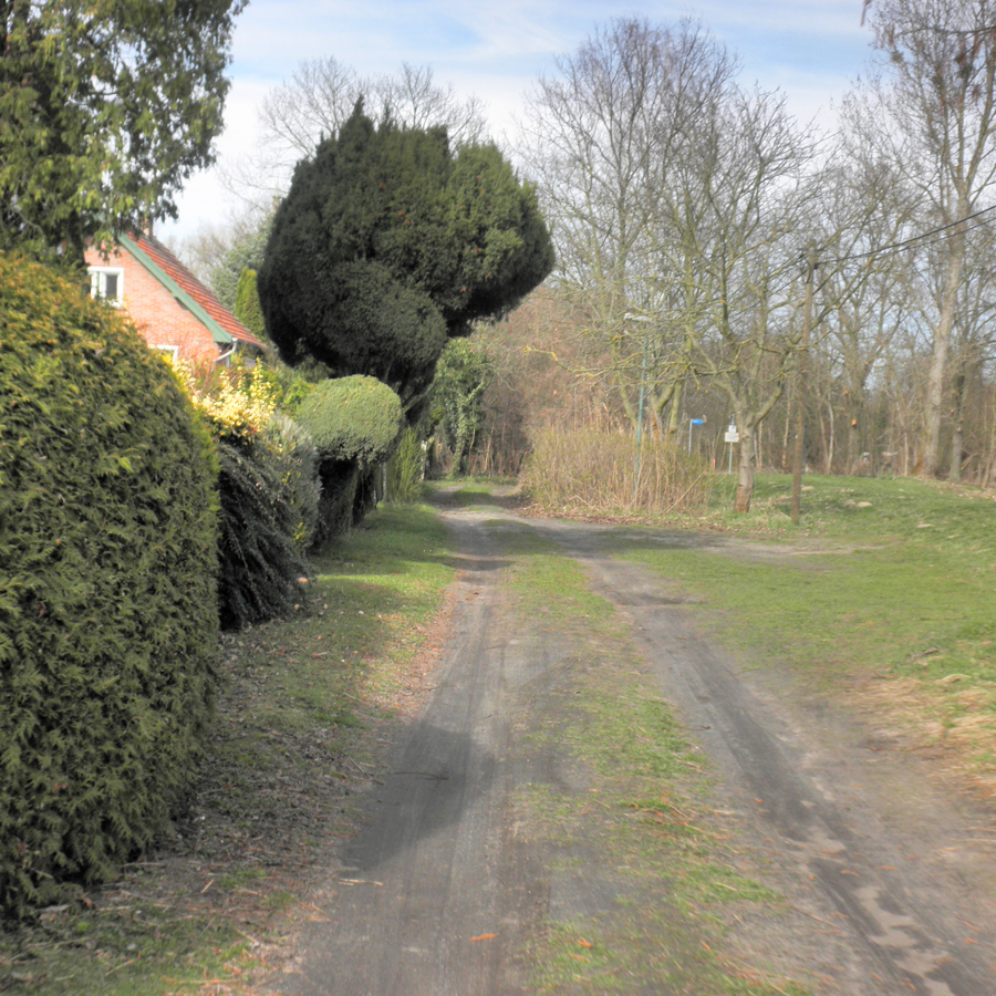 Manche Bäume lagen immer noch auf dem Weg. Der Stürm im Oktober war heftig. Ich muß Umweg suchen, am einfachsten geht man aufs Feld. Aber Felder sind auch feucht nach vielen Regentagen. Trekker hat seine Spur hinterlassen, was aber schön schrammig ist. Das habe ich ungefähr geahnt und habe 26″-Rad mit 42mm-Reifen mitgenommen, sogar ein Schutzblech drangemacht.