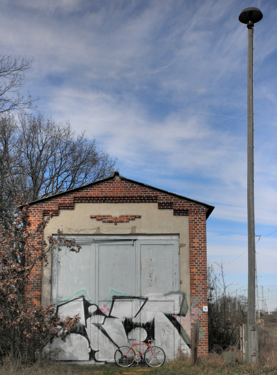 Nun fahre ich nach Nauen zurück, teils nehme ich andere Wege, damit es nicht langweilig wird. Zwischendurch esse ich Lyoner aus der Dose, meine eiserne Ration, immerhin Bio. Die Sonne steht schon lange tief. Es ist aber nicht kalt, so um 6, 7 Grad. Ich muß aufpassen, daß ich nicht schwitze. Konstant mit mäßigem Tempo fahren. Die Wege kenne ich. Züge nach Berlin fahren jede 20 Minuten. Keine Eile, und ich geniesse noch den letzten Sonnenschein eines schönen Tages.