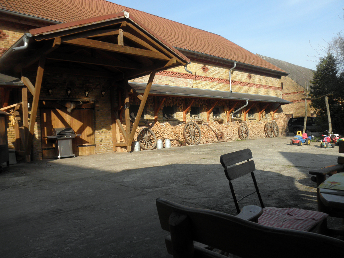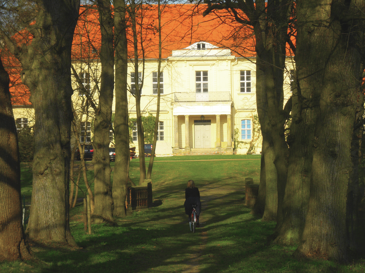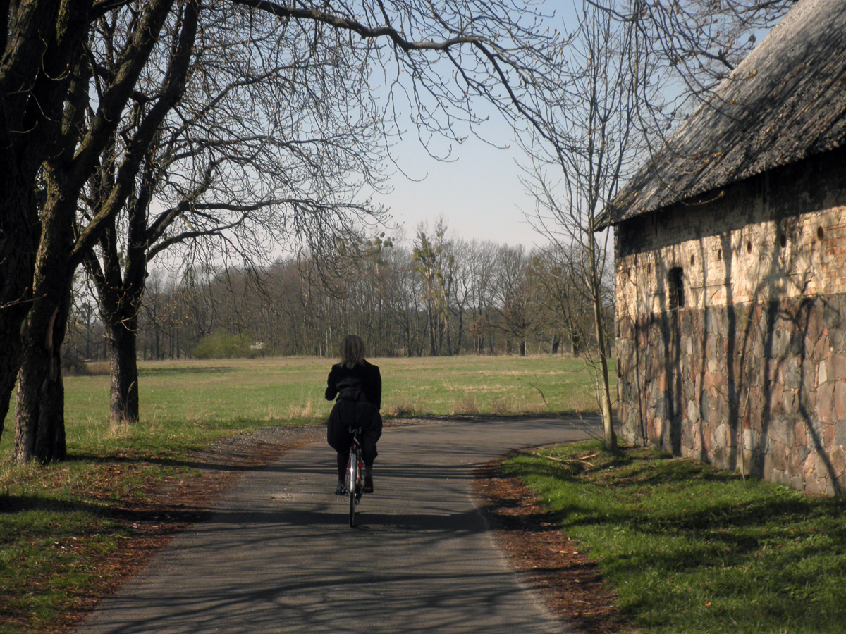 Von Läwenberg geht der Weg auf leicht hügeliger Landschaft. Radeln kann man aber ohne Problem, Aussicht ist schön. Im Kleindorf Hoppenrade steht ein privat bewohntes Schloß. Gleich kommt der typisch brandenburgisch aussehendes Dorf Großmutz. Hier gibt es ein netter Bauernhof mit Café. Hier machen wir Rast und geniesse Kaffee und Kuchen. Wozu radelt man denn sonst? Zuviel an Fett zu verlieren ist ja doch nicht gesund.