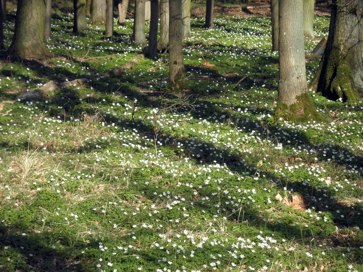 Vor Liebenberg finden wir den Waldboden voll mit weissen Anemonenblüten, wunderschön und nur jetzt.