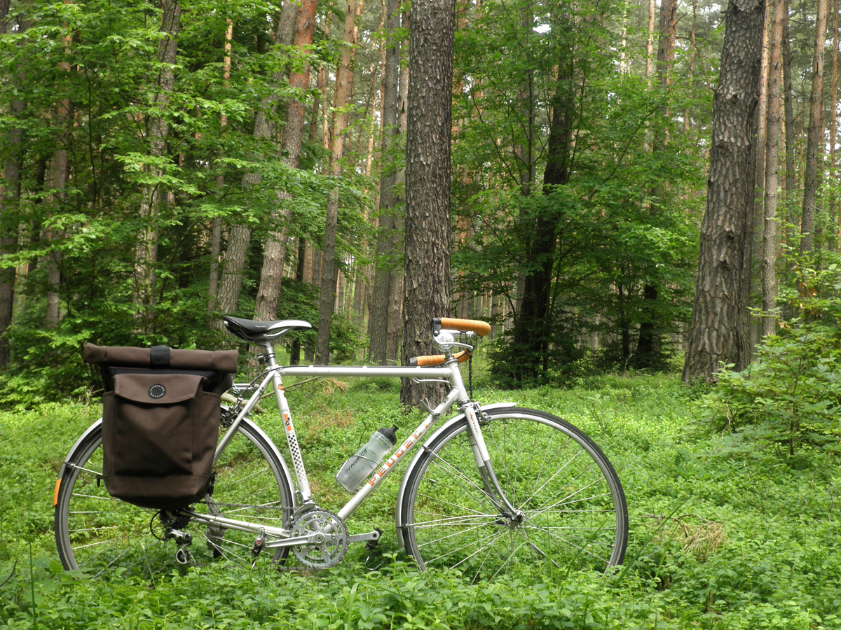 Gerade probiere ich die Tasche von Fairweather/Blue Lug. Es ist aus Baumwolle, aber auf der Innenseite ist eine wasserdichte Kunststoffolie laminiert so daß kein Regenwasser eindringen wird. mit 14 bis 20L Inhalt ist es groß genug, mit einer Tasche für einige Tage unterwegs zu sein. Zum richtig Reisen wäre es empfehlenswerter, beide Seiten mit Taschen gleichmäßig zu belasten. Dann ist auch eine längere reise möglich. Zum besseren Gewichtsausgleich sollte man dann auch vorderrad mit Gepäck belasten? Mit 4 Taschen steht 80L Gepäckvolumen zur Verfügung. Allerdings ist diese Tasche nicht sehr leicht. Also eher für die Stadtgebrauch oder für kleinere Touren gedacht. Sie funktioniert auch als Back Pack(Rucksack). Es ist daher praktisch, wenn man mit Rad und zu Fuß unterwegs sein sollte. Empfohlene Belastung bis 4kg finde ich zu wenig. Sie verträgt sicher mehr. Praktisch sind solche taschen schon, daß man alles mögliche einfach reinschmeissen kann. Vielleicht für Menschen, die Ortlieb, Vaude & Co. nicht schön finden. Aber es gibt mittlerweile eine große Auswahl an solchen Taschen und ich sehe keinen Grund dafür zu sagen, es mus diese sein. Es gibt in braun, schwarz, weinrot, khaki-grau und navy-blau. Ich muß damit mal im Regen fahren.