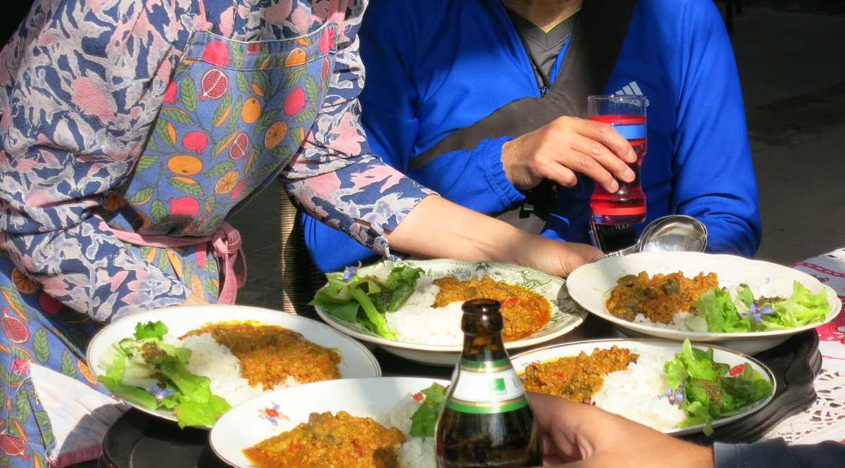 Endlich Gerswalde, endlich Mittagessen! Natürlich im Cafe zum Löwen, wo die freundliche Japanerinnen leckeres kochen und backen. Cafe ist nun umgezogen in den Großen Garten. Alte Location war sehr nett, jetzt ist sie noch netter. Curry für alle, alle zufrieden und glücklich. Hausgemachte Ginger Ale und Hibiskustee sind auch lecker.