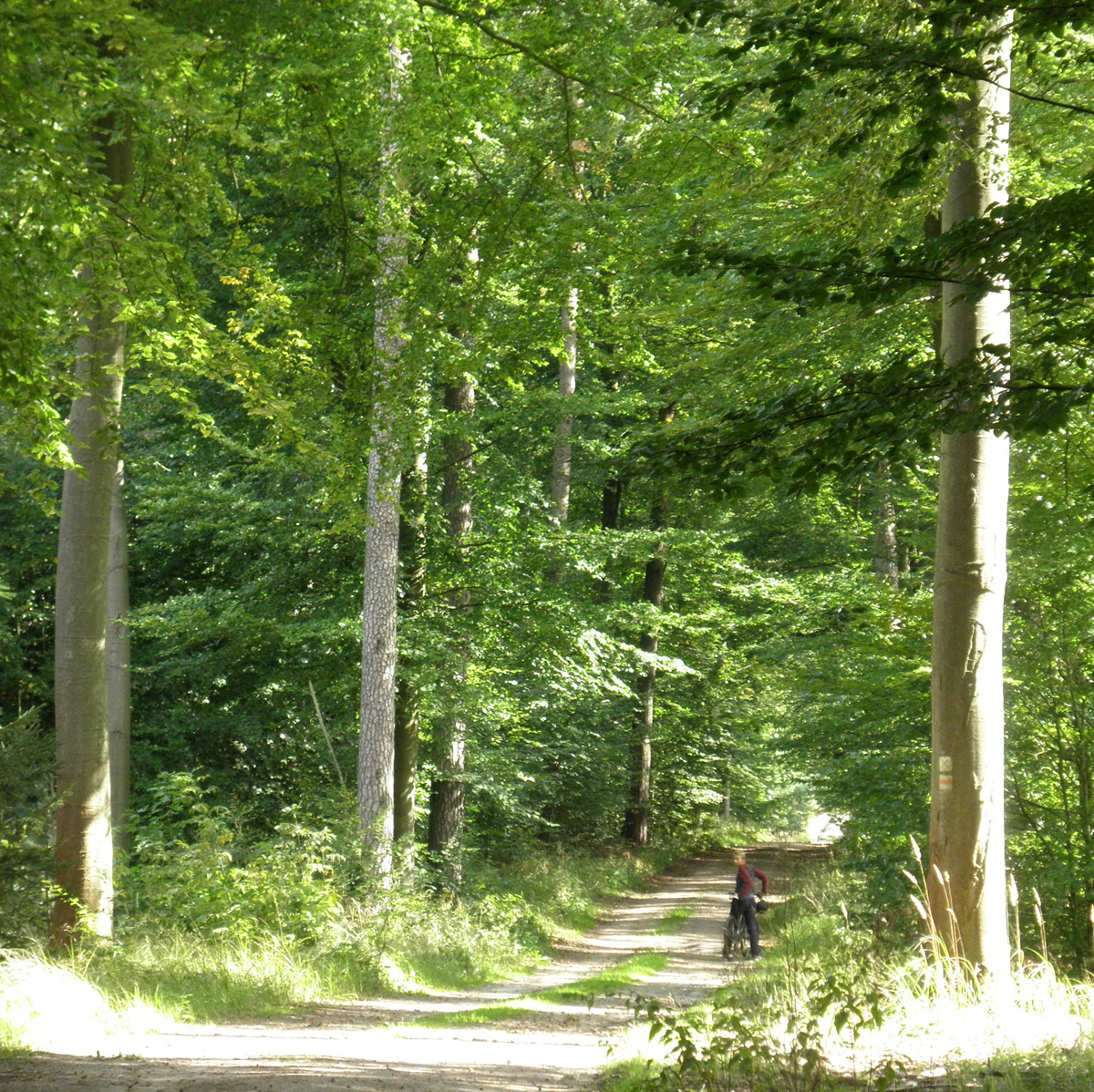 Entlang Zensee gibt es geteerten Radweg im Wald, der ganz schön auf und ab geht. Das kann man sportlich geniessen, oder gemütlich bewältigen. Über eine kleine Brücke, die sich über die Engstelle zwischen Zensee und Platkowsee spannt, nach Wuppgarten, dann gleich in den Wald. Hier ist der Waldweg gut zu radeln.
