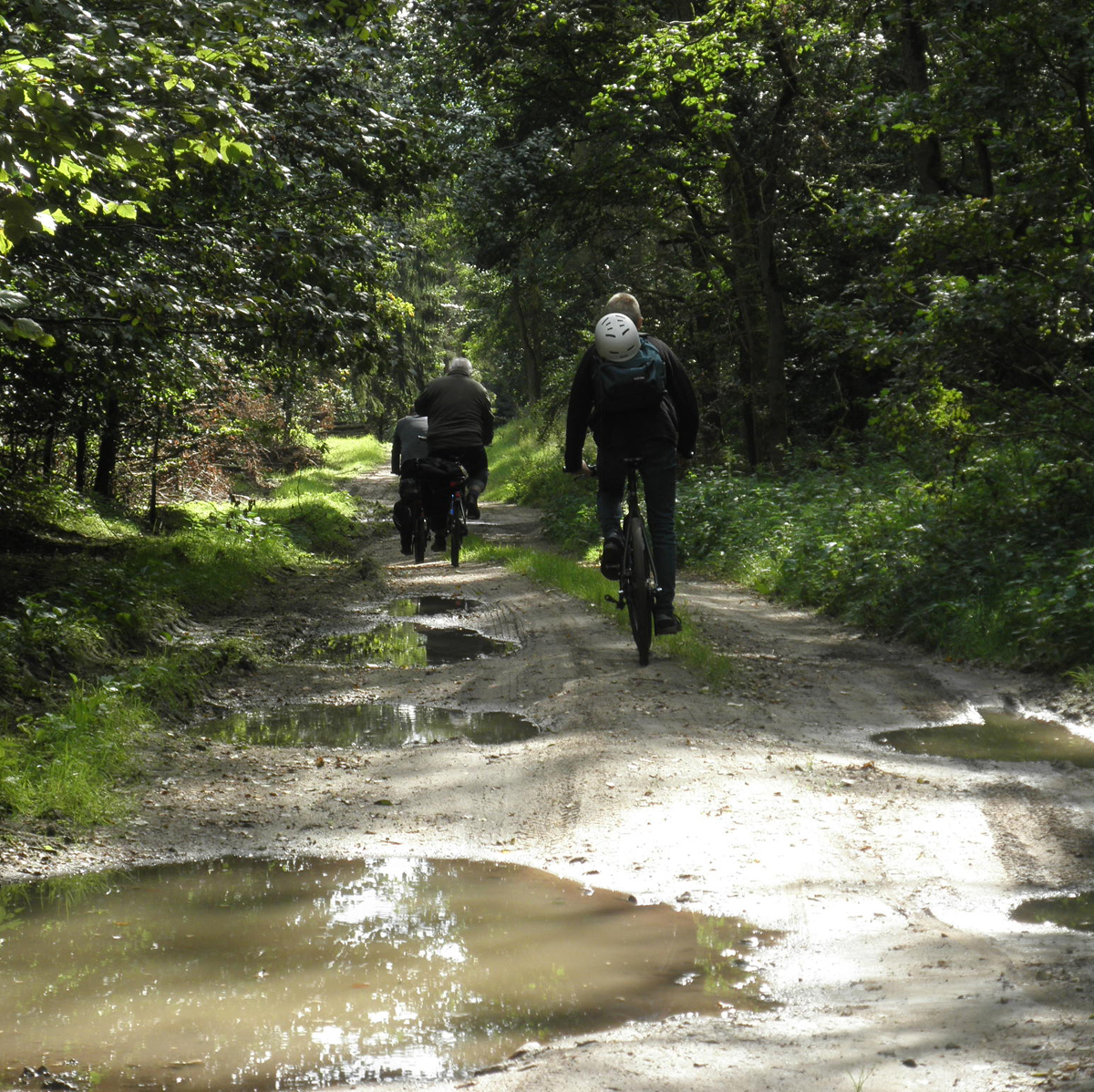 Um Templin zu verlassen fuhren wir Prenzlauer Chaussee. Hier kann man stattdessen entlang Templiner Seeufer radeln(schöner). Wir wollten ein wenig tempo machen. Ein Stückchen auf der Bundesstrasse B109 hatten wir zu radeln, um dann in den Waldweg Richtung Laatz einzubiegen. Hier beginnt ein etwas schwierigerer Abschnitt dieser Tour. Dieser Waldweg ist teils sandig, teils matschig, hat recht viel Auf und Ab(z.T. steile) so daß man sich drauf konzentrieren muß, gute Fahrlinie zu finden.