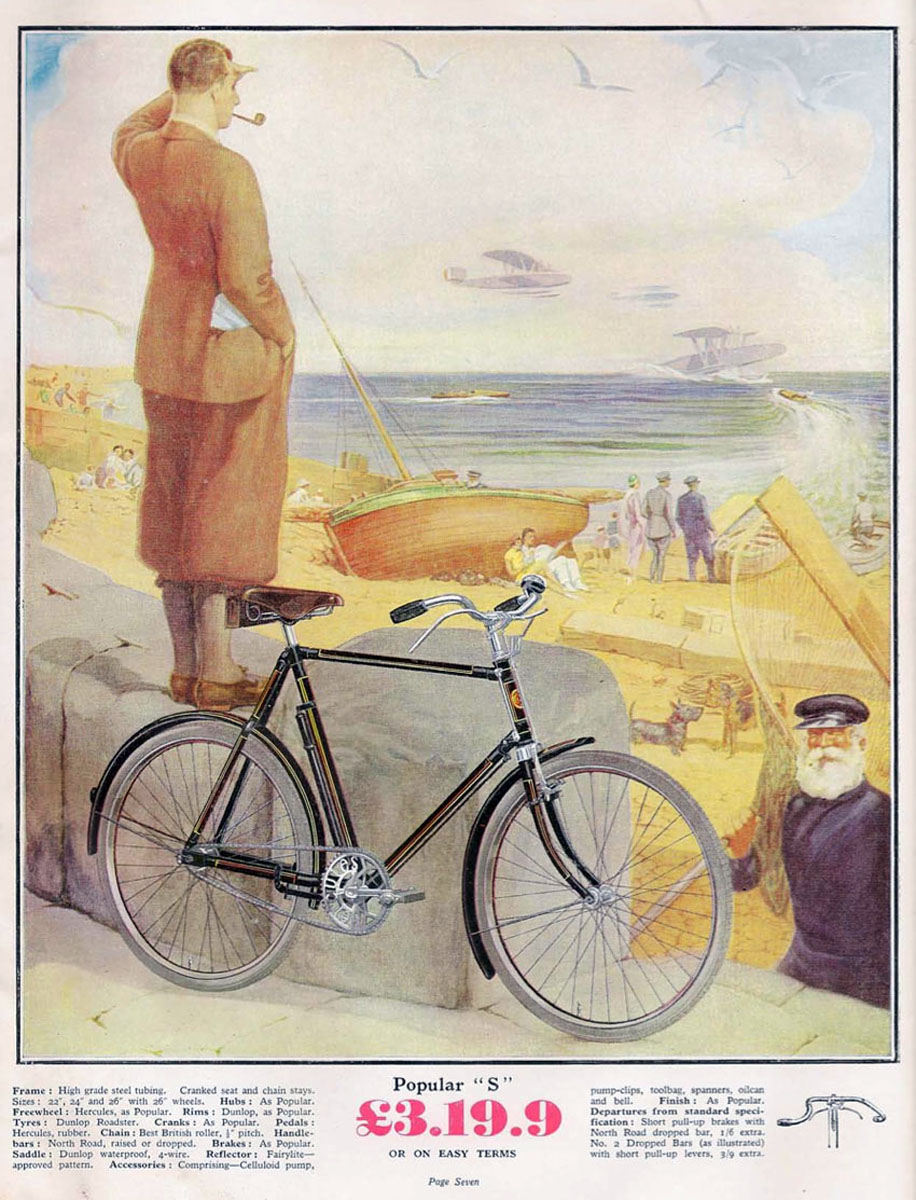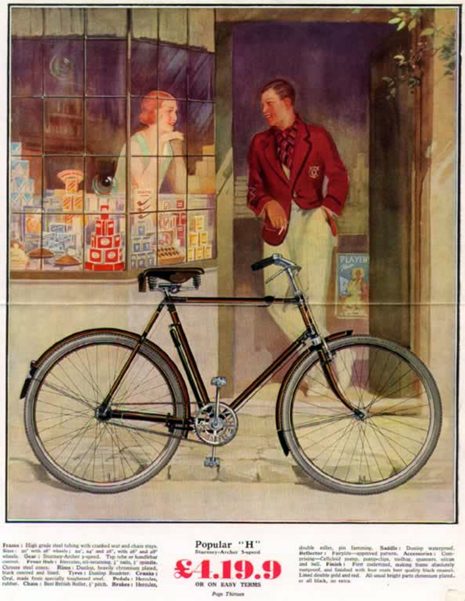 In den 30er Jahren war Hercules der größte Fahrradproduzent der Welt, und natürlich Nr. 1 in Großbritanien, also absolute Massenproduktion. Hercules hat alles selbst hergestellt, ausser Gummiteile wie Reifen/Schlauch. Dessen Fahrräder waren aber konservativ und schwer. Dir Firma hat auch Rennen sponsiert. Eileen Sheridan z.B. fuhr für Hercules Rennen, fuhr aber kein Hercules-Rad beim Rennen. Sie sagte, „es ist so schwer!“.