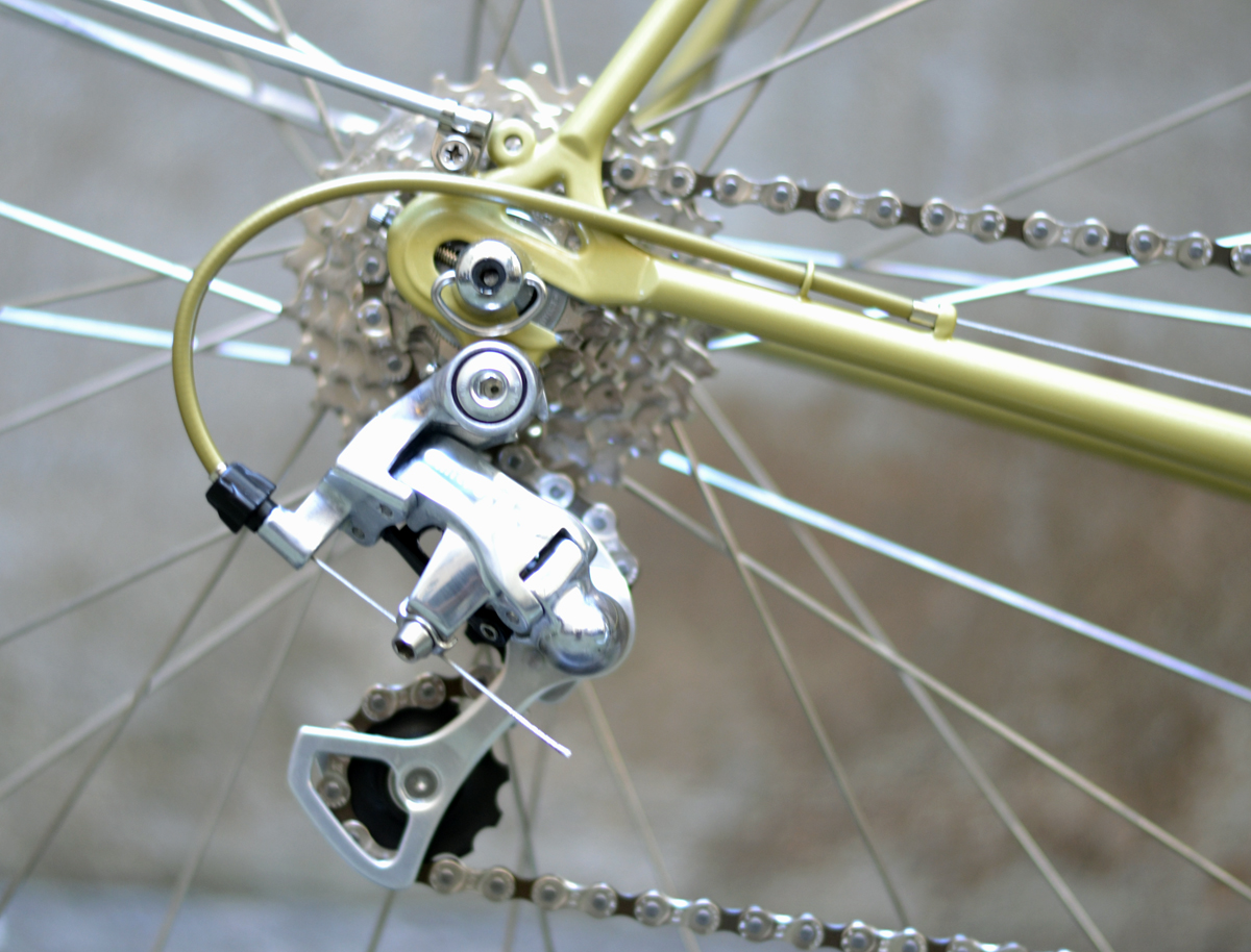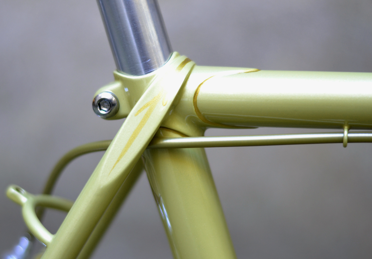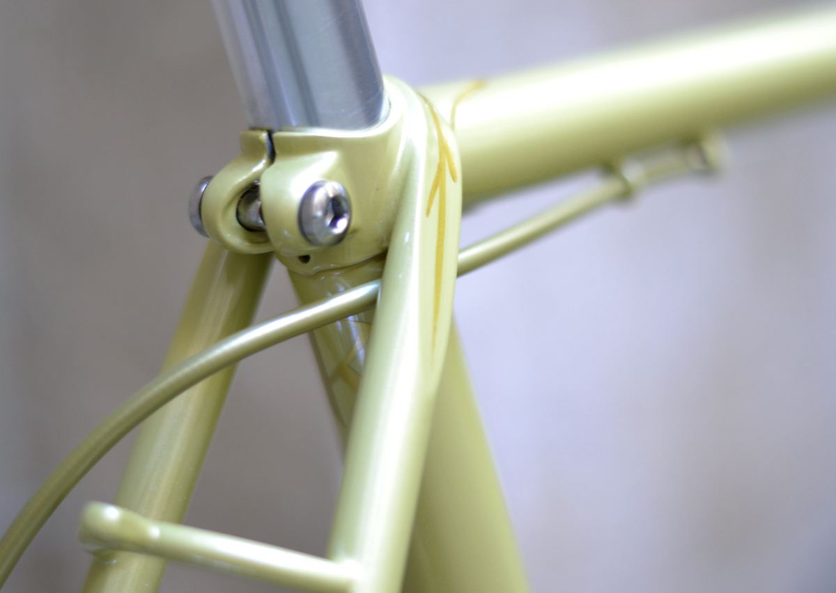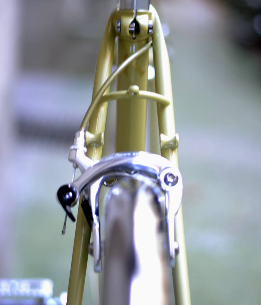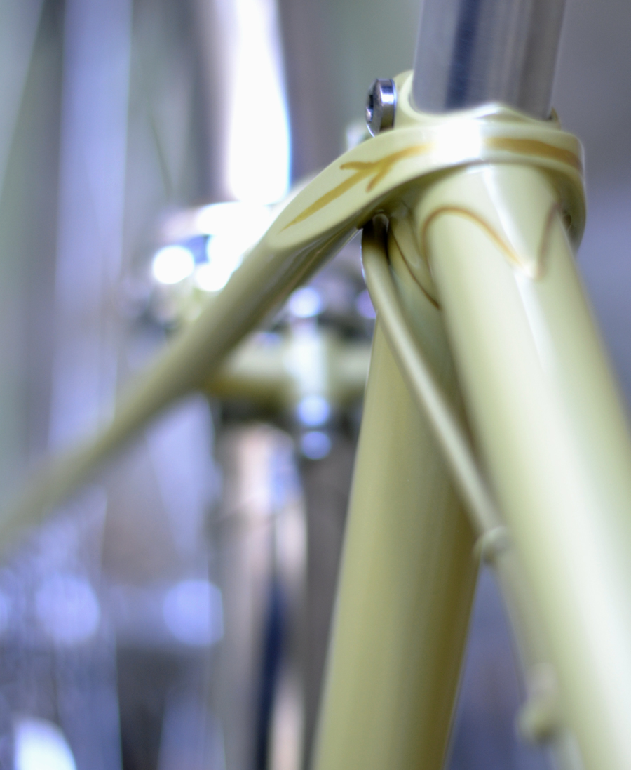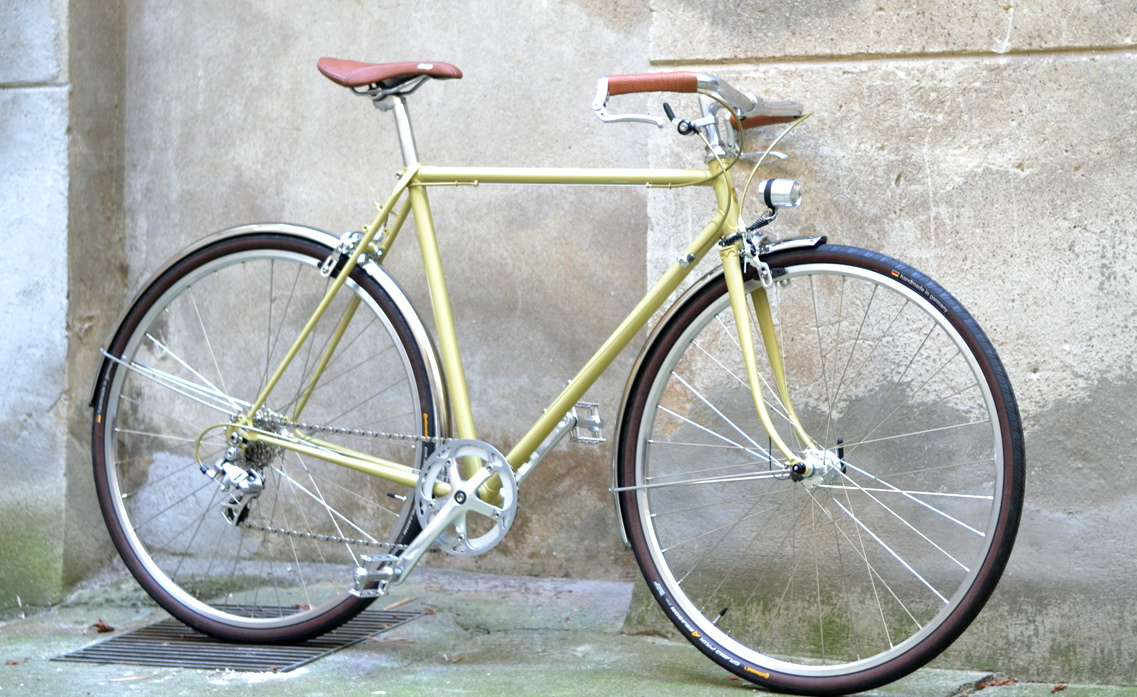 Der Rahmen wirkt dezent wie elegant, hat wie so viele britische Rahmen, dünne Gabel und Hinterbau. Es wird bestimmt komfortabel fahren. Die bestückende Teile sind meistens bereits bestellt. Einige Unklarheiten wie Lenkerform muß ich bei Montage ausprobieren.