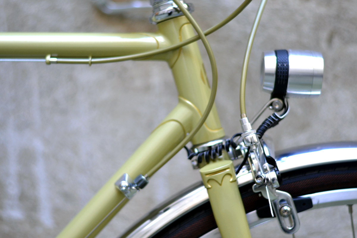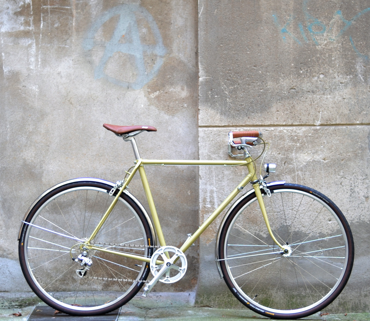 Das Rad bekommt noch einen Gepäckträger, und dazugehörendes Rücklicht. Ein freudiges Erscheinungsbild, wird leuchten auch in der dunkleren Jahreszeit.