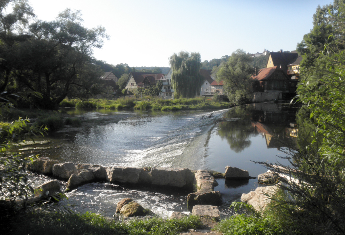 Von hier geht es ziemlich flach und angenehm entlang Jagst. Ich biege gleich ein in Berlichingen. Hier wurde Götz von Berlichingen geboren, den Goethe frei nach seiner Vorstellung für seine Erzählung modellierte. Es war sicher eine interessante Zeit, wo hier Krieg, Fehde und Intrige Alltag war. Du hast mich beleidigt, so mache ich Dich platt, so ungefähr? Die Mächte hatten, oder stellten selber, Freibrief. Das ist vielleicht heute noch so, nur „wie“ hat sich geändert,, Aber dieser Ort ist ganz unscheinbar. Ich fahre weiter.