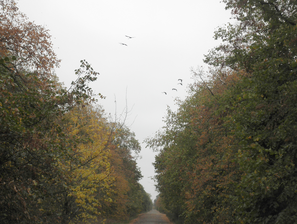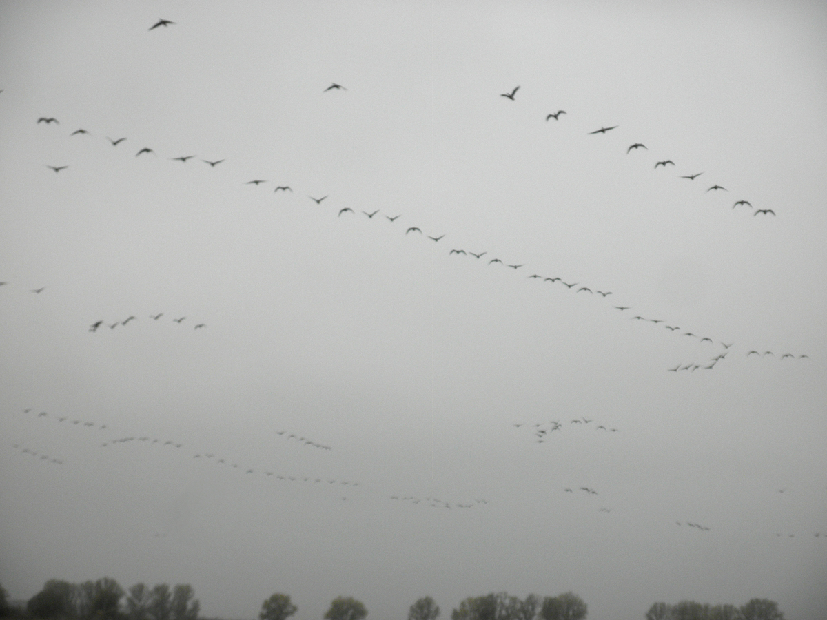 Auch auf dem Rückweg sehe ich viele Kraniche. Gänse sind auch dabei. Je nach der Windlage, kann man sie noch 2 Wochen antreffen. Diese Vögel machen mich irgendwie glücklich, ich weiss nicht warum.
