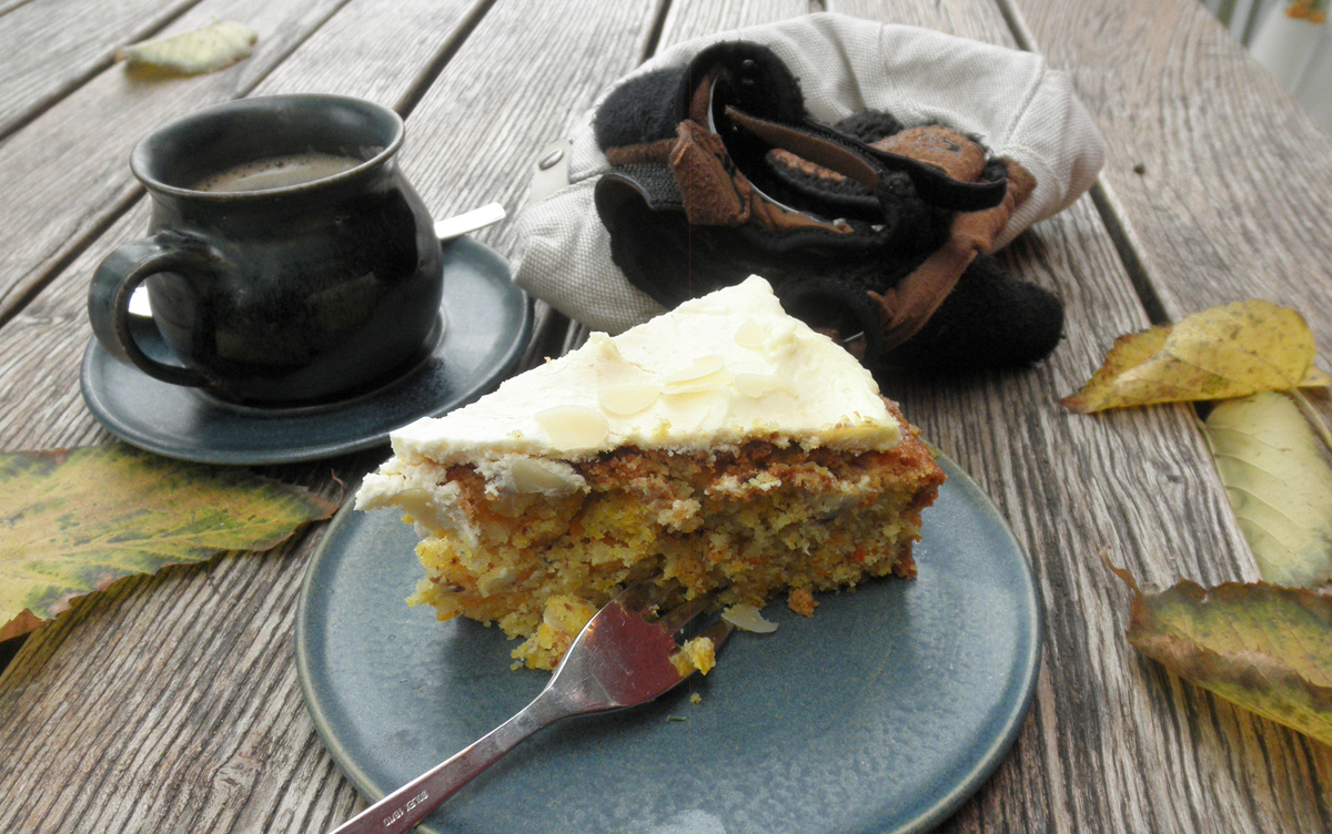 In Linum, Haupttouristenort für die Kranichbeobachtung, gehe ich zum Rixmann’s und kaufe einen kleinen Kürbis, “ Sorte Butter Cup“, der wie Marone schmecken, und stecke in den Rucksack rein. Dann im „kleinen Haus“ Kaffe und Kuchen(natürlich Kürbistorte).