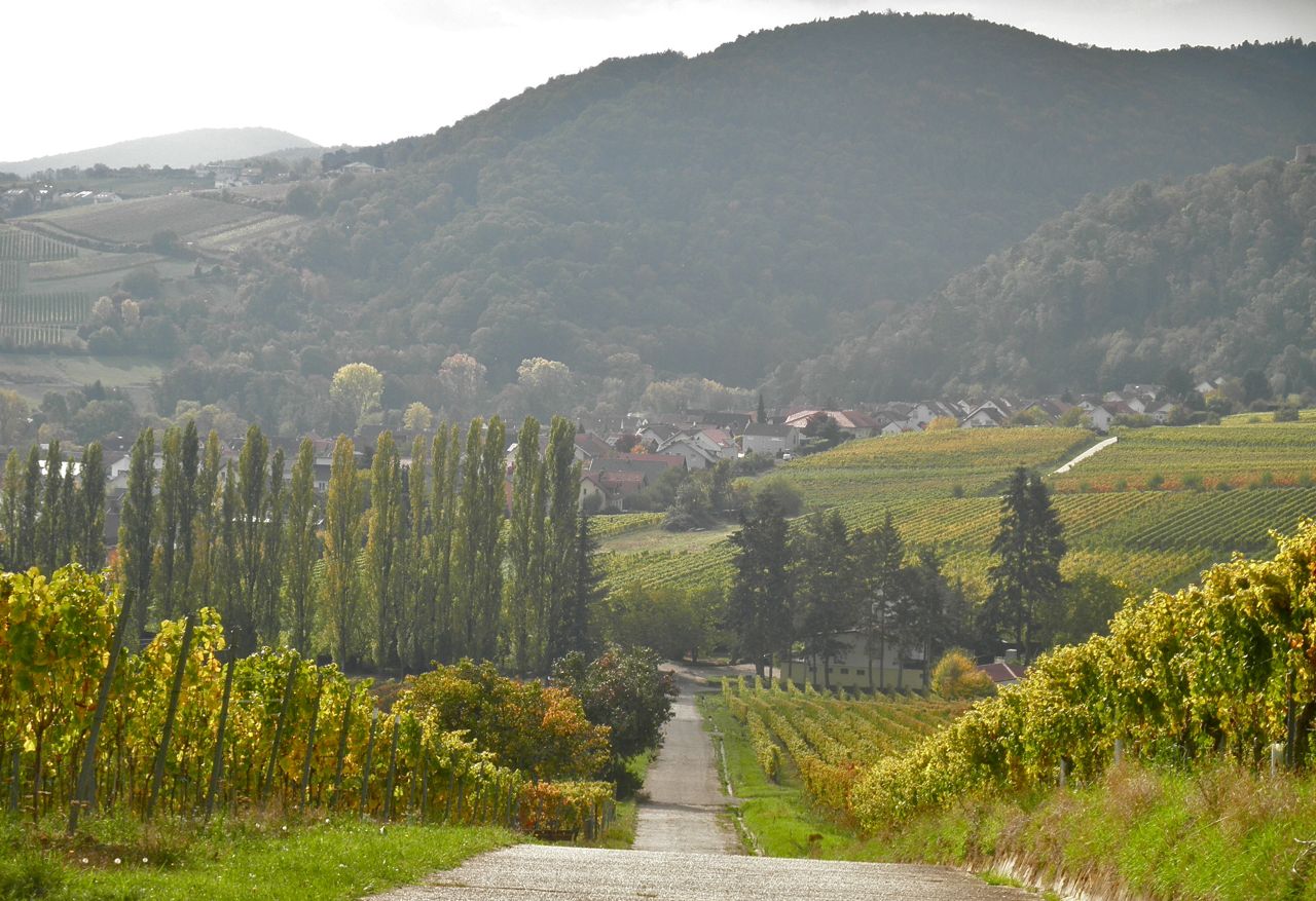 Aber am Ortsrand wird es Schluß mit lustig. Hier beginnt die Bergfahrt. Gleich am Anfang geht recht steil. Mir kam es vor wie eine Wand. Das Foto kann mein Gefühl nicht richtig wiedergeben, leider. Als langähriger Flachländler spüre ich schon Respekt davor.