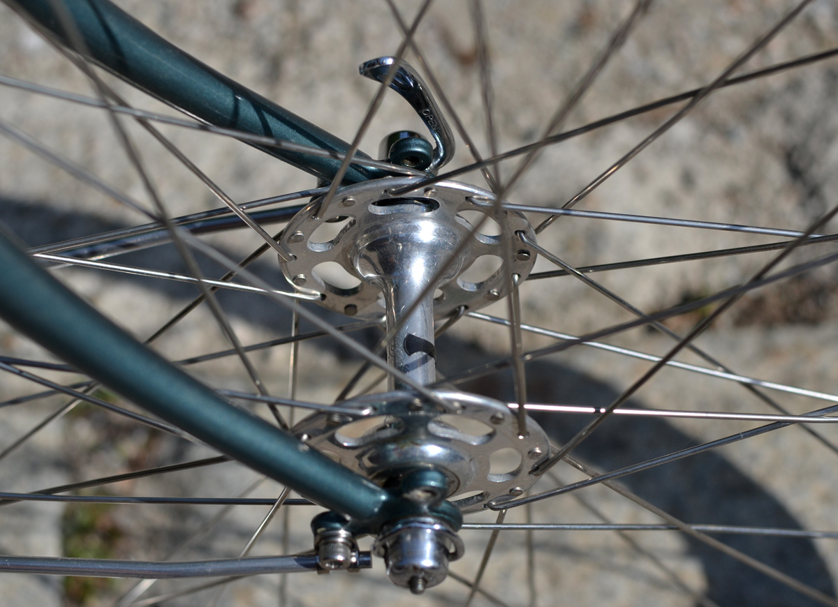 Was braucht ein Reiserad für Brandenburg,, einen leichtlaufenden Radsatz mit mittelbreiten Reifen für Asphalt, für Feld- wie Waldwege, die oft sandig oder verwurzelt sind. Dafür habe ich Campa Record Naben, Mavic MA2 Felgen, 2mm Speichen ohne Konifizierung und Grandbois Reifen mit 30mm Breite gewählt.