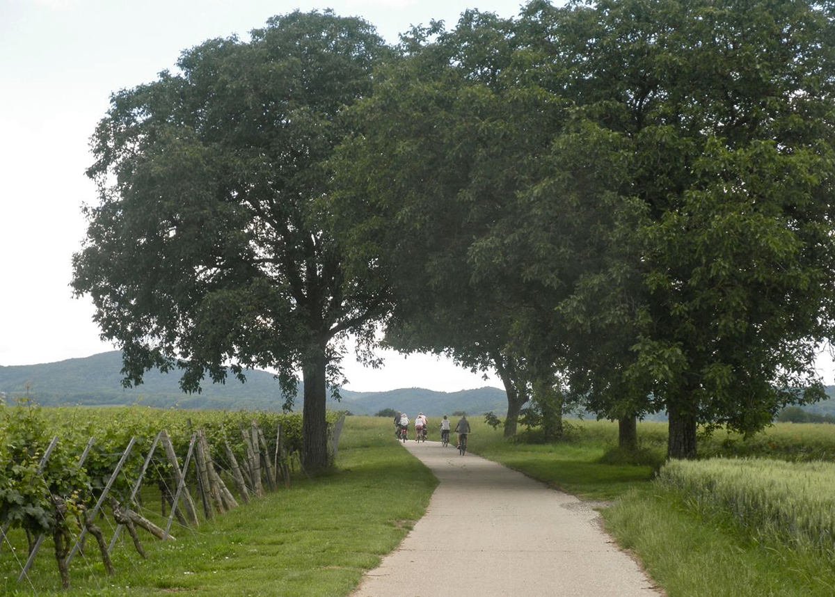 Nun radelte ich Wald unter, fuhr gleiche Route zurück. Das Wetter besserte sich. Es war noch viele Menschen an Weinberge. Danach drückte ich auf Tempo. Flottes Radeln machte Spaß.