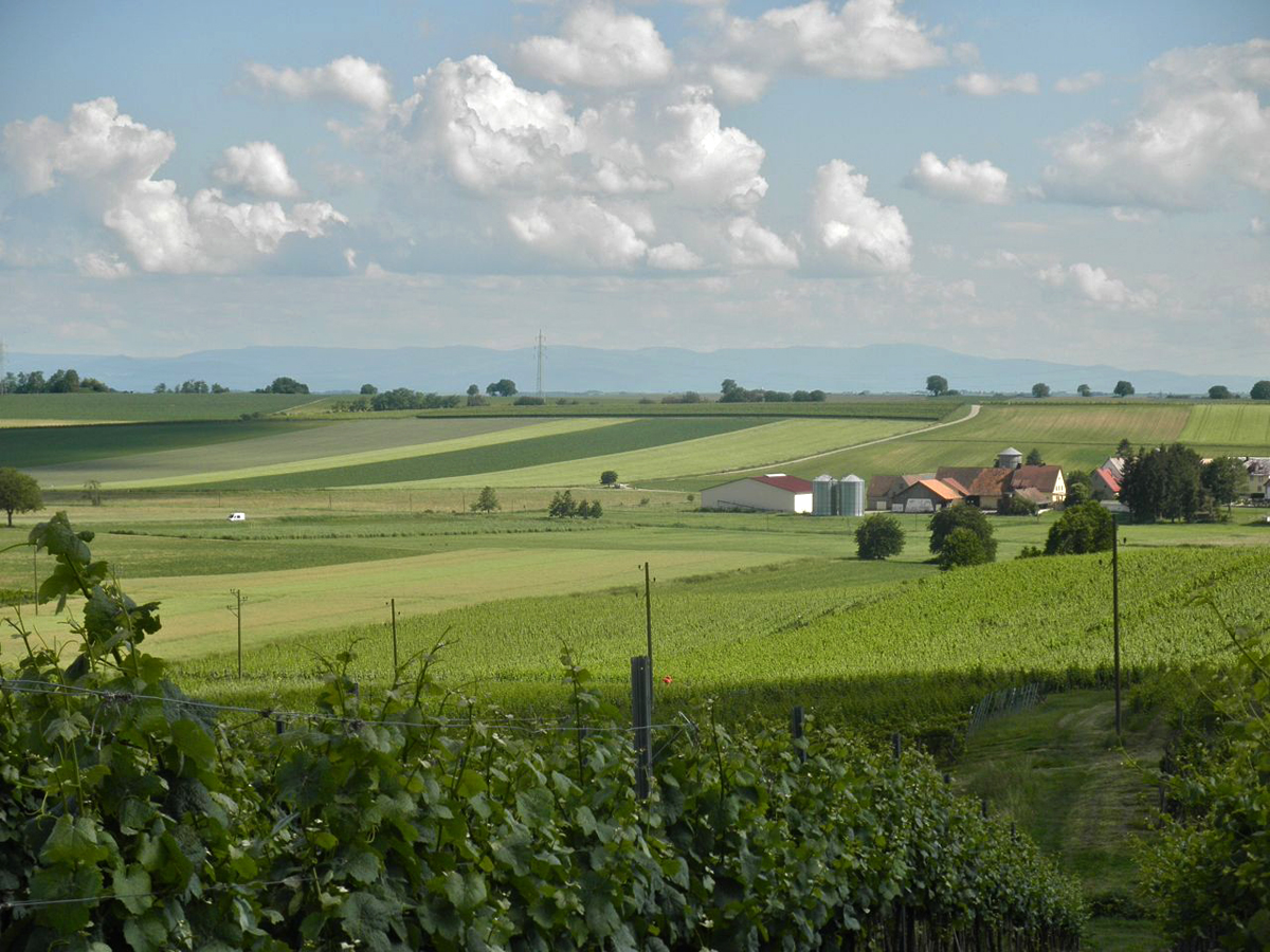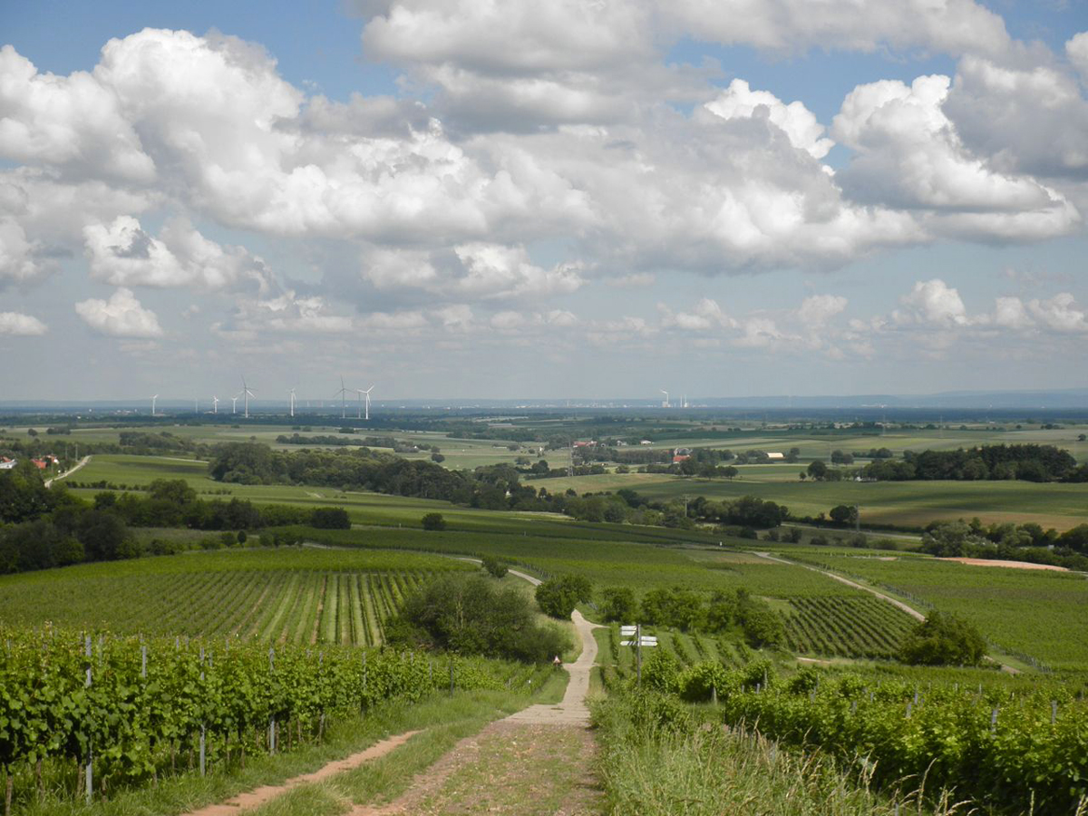 Bis Dörrenbach isr nur 15km, und die Route ist angenehm zu radeln, bis auf die letzte 2km, die steil bergauf geht. Denn, Dörrenbach liegt bereits im Pfälzerwald, nicht mehr auf Rheinebene.Und auf der Oberkante des Weinberges gibt es schöner Ausblick. Am Horizont sind Odenwald wie Schwarzwald zu sehen.