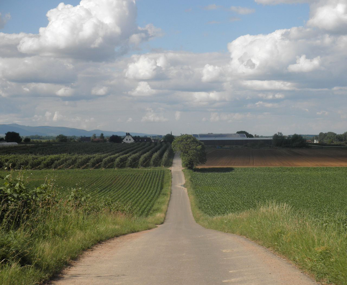 HIer oben klaue ich 2 Äpfel vom Baum und geniesse den weiten Blick bis Widdern, wo die Autobahn die Jagst überquert. Dann sause geschwind unter bis Flußebene.