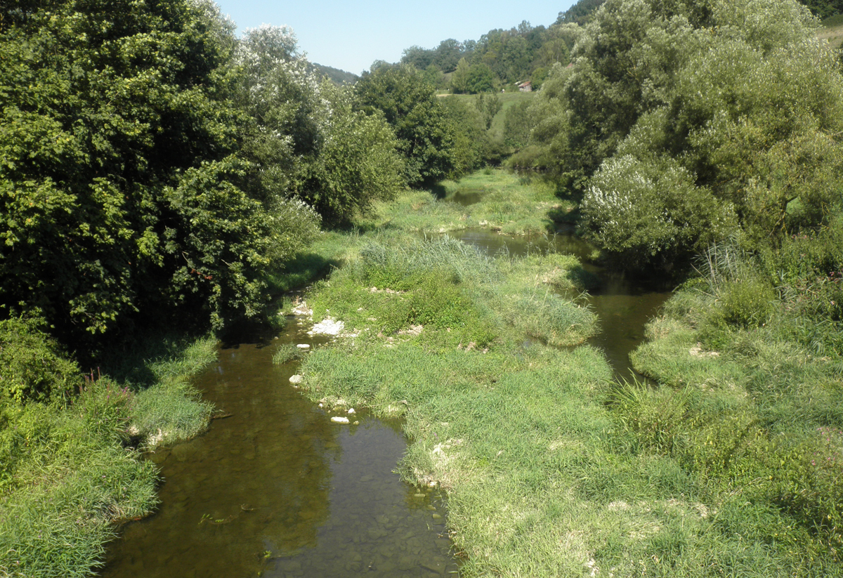 HIer fließt Jagst gemächlich, es ist sehr seicht und die Flueßgeschwindigkeit recht langsam. Es gibt viele Fische, auch einige größere. Der Fluß hat sich schnell erholt von der Katastrophe vor 3 Jahren.