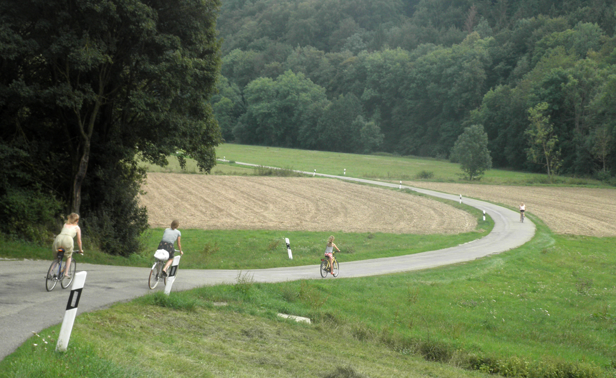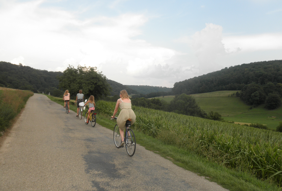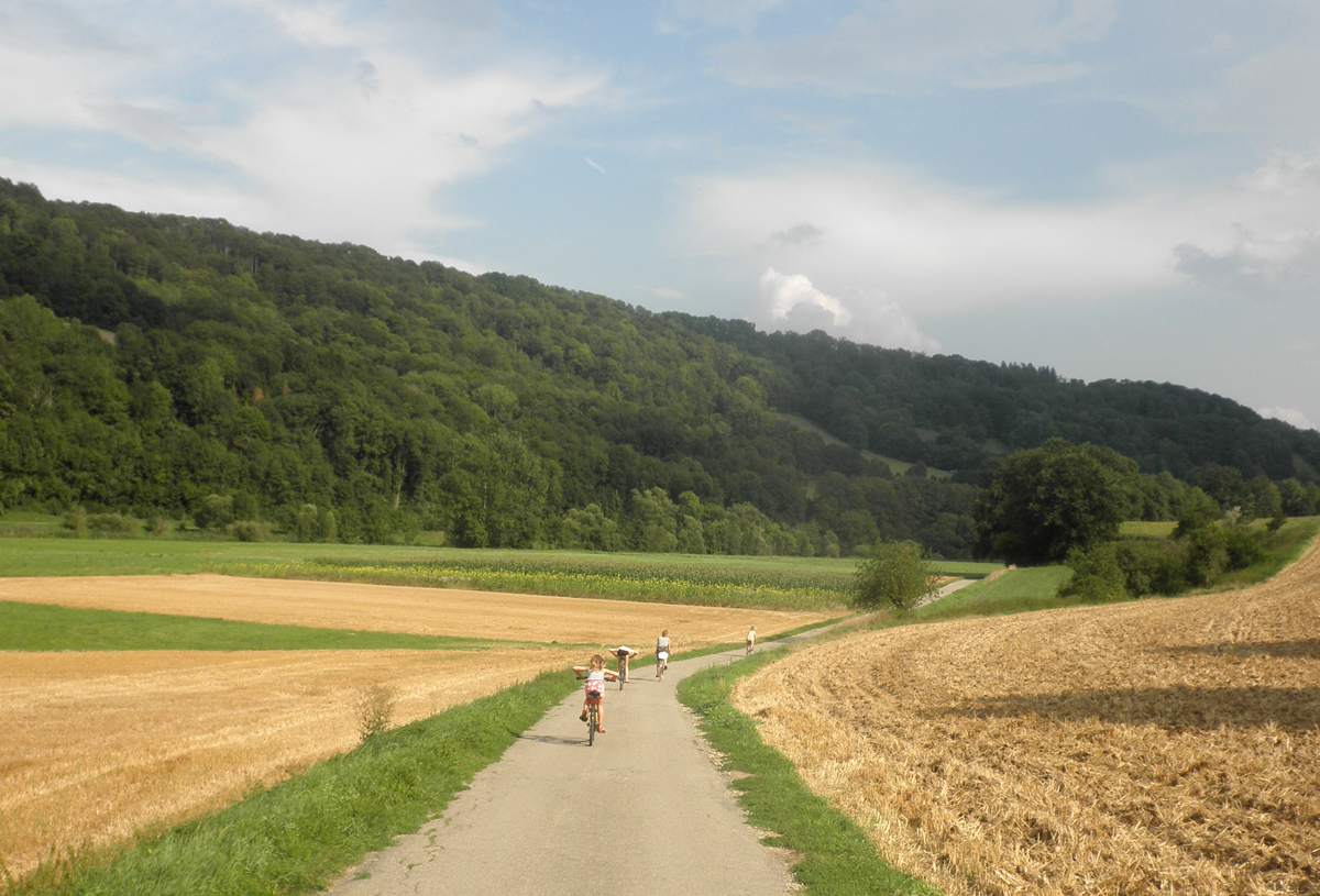 Glücklich radeln wir zurück. Wir wollen noch in der Jagst baden.
