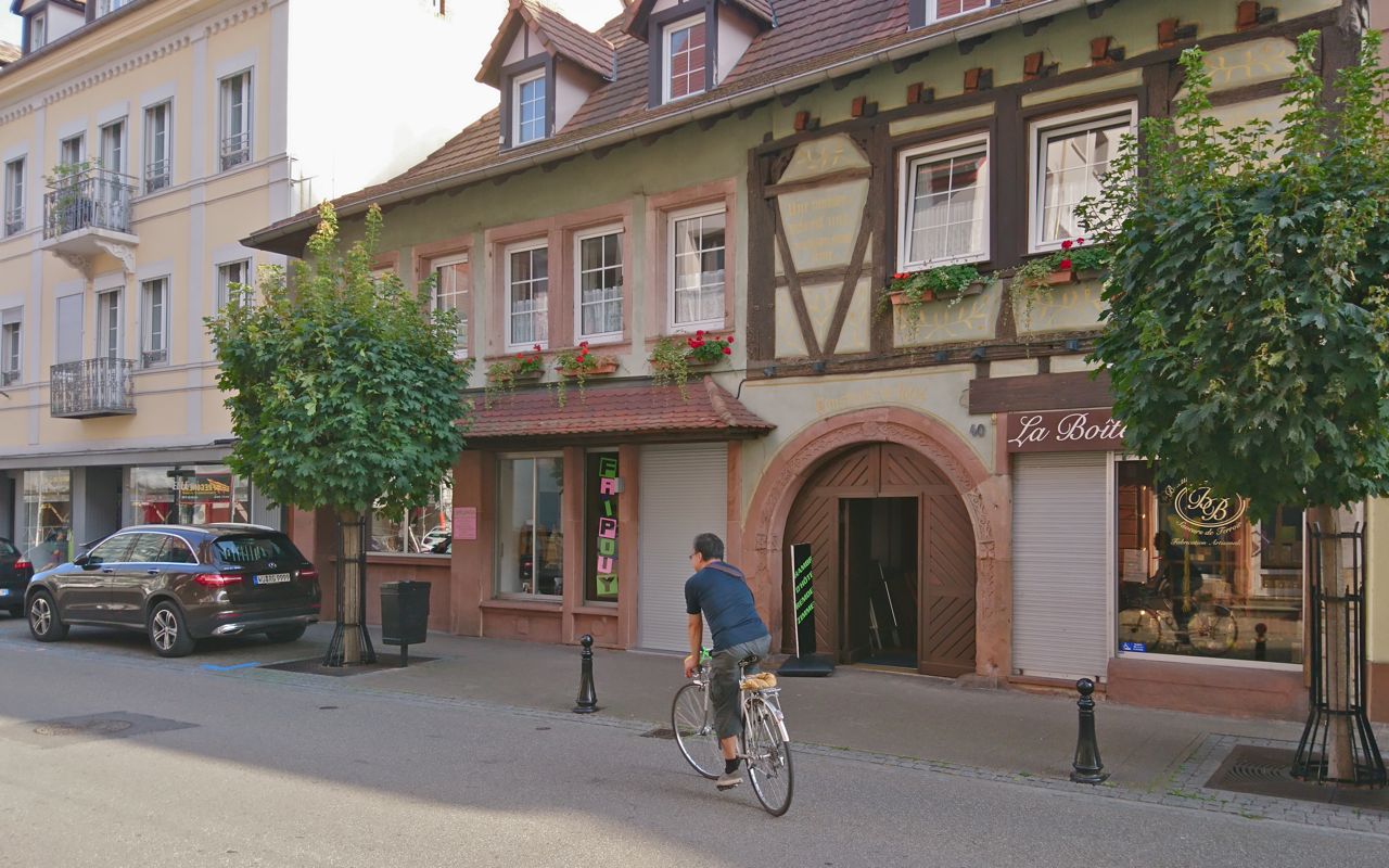 Das Wetter ist schön. Schwarzwald liegt am Horizont. Schweigen-Rechtenbach, das letzte deutsche Dorfpaar vor Frankreich ist zugleich Startpunkt der südliche Weinstrasse. Mächtiges Deutsches Weintor erinnert daran, daß Weinstrasse eine Werbung aus den 30er Jahren entstanden ist. Noch 200m bergab dann ist man schon Im Stadtkern von Wissenbourg(Weissenburg). Altstadt finde ich sehr hübsch, kaum Neubauten zwischendurch, Altbausubstanz ist nicht museal gepflegt. Es sieht bißchen so aus, als wäre der Krieg gerade zu Ende gegangen, den die Stadt gut überstanden hat, leicht staubig, leicht morsch. Bauten sind elsäßisch(nicht gleich deutsch zu nennen), die Nutzung,d.h. wie es gelebt wird aber französisch. Cafes mit kleinen Tischchen und Stuhlen auf schmalen Gehwege, wo die leute klissenhaft sitzen bleiben. Ich hatte leider keine Kamera bei. Über diese Stadt werde ich später einen Beitrag schreiben.