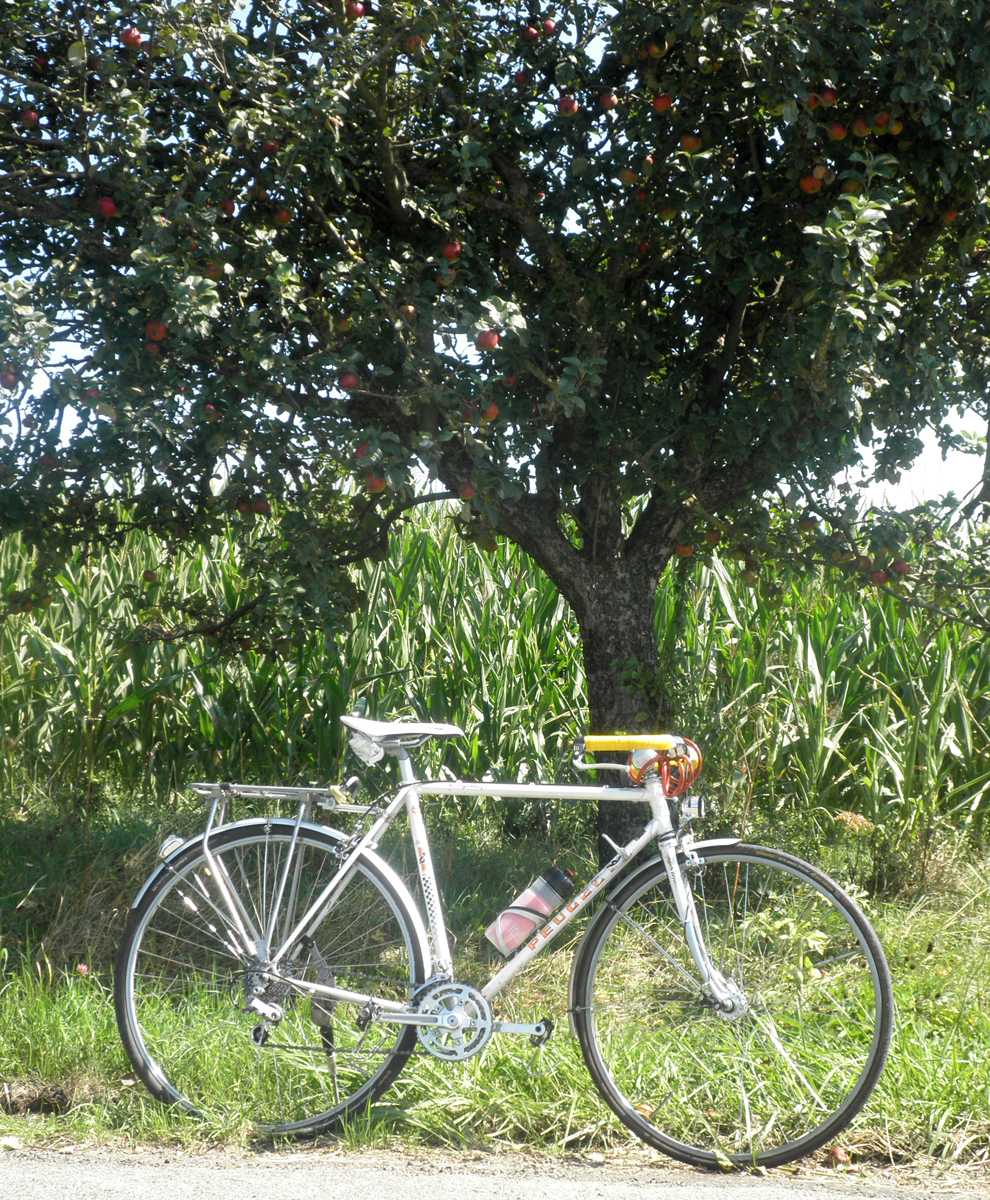 Hier klaue ich wieder Apfel vom Baum und mache eine kleine Pause. Äpfel schmecken von jedem Baum anders, und welche an der Sonnenseite hängen, schmecken besser.
