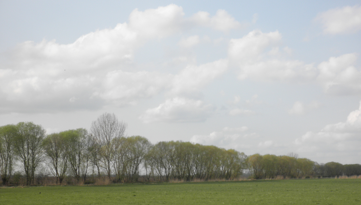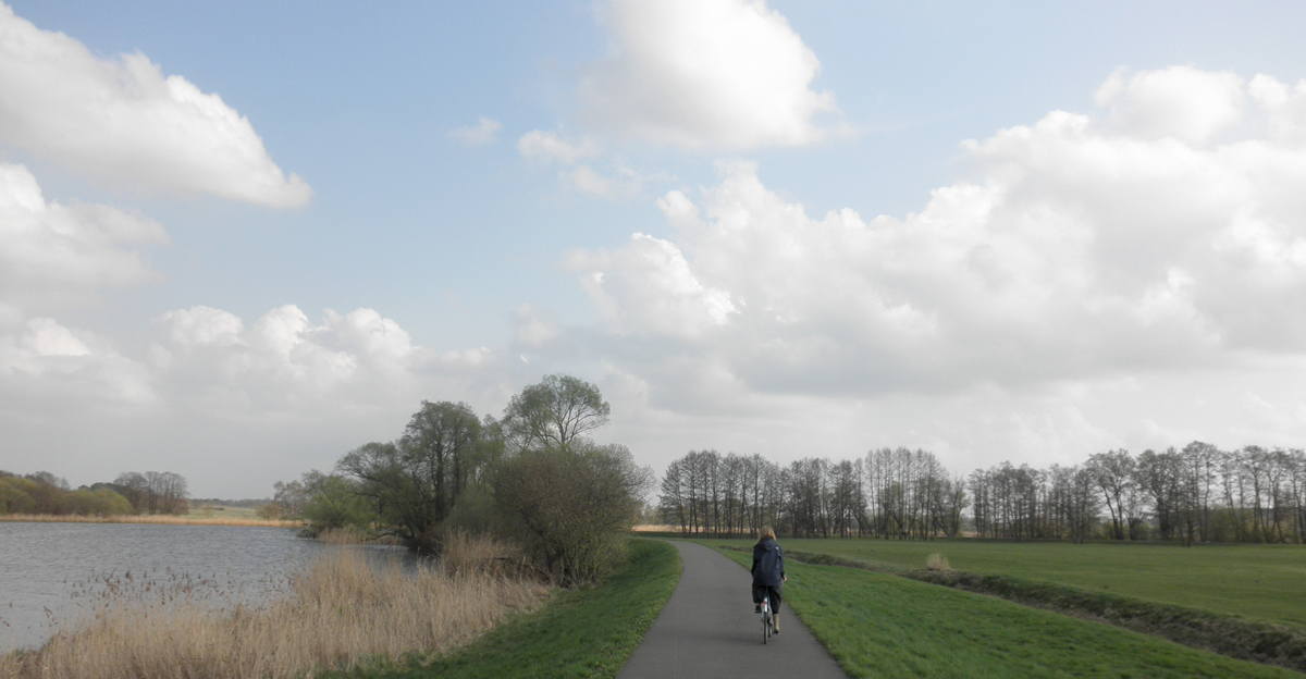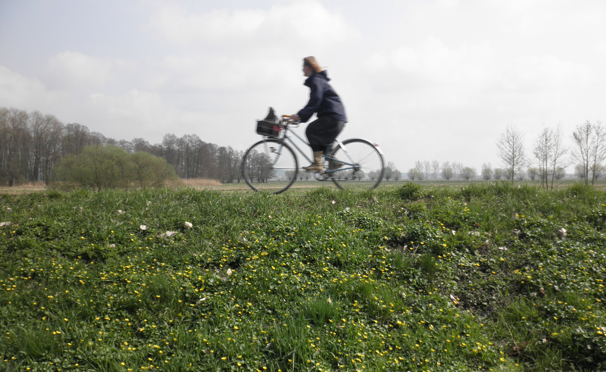 Nun fährt man in Weidelandschaft. Hier ist es immer noch etwas feucht trotz intensiver Kanlisierung. Wenig Menschen, einsame Gehöfte. Gefühlsmäßig ist man sehr weit weg von Berlin. Faktisch ist es aber nur 50km entfernt.