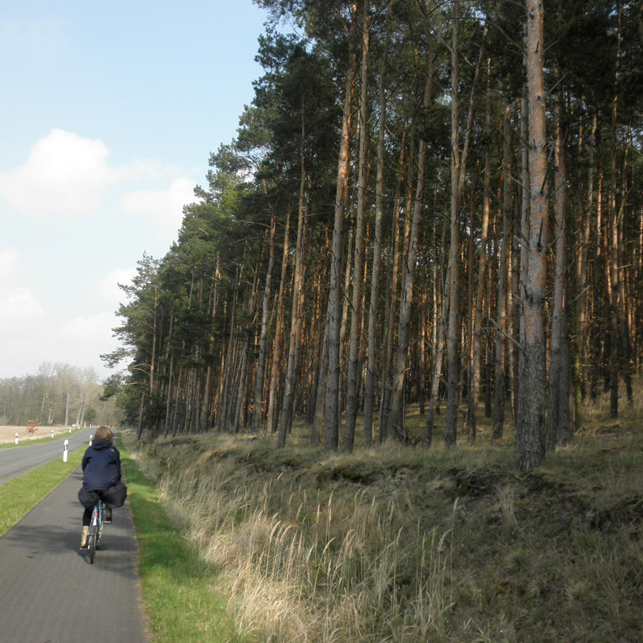 Von Nauen kann man in allen Himmelsrichtungen losradeln, also ein guter Ausgangspunt. Ich fahre los, ohne Plan nach Lust und Laune, denn ich bin relativ oft hier. Egal in welche Richtung, gibt es überall Alleen mit alten Bäumen. Das macht eine gute Laune, unter grünen Bäume zu radeln.