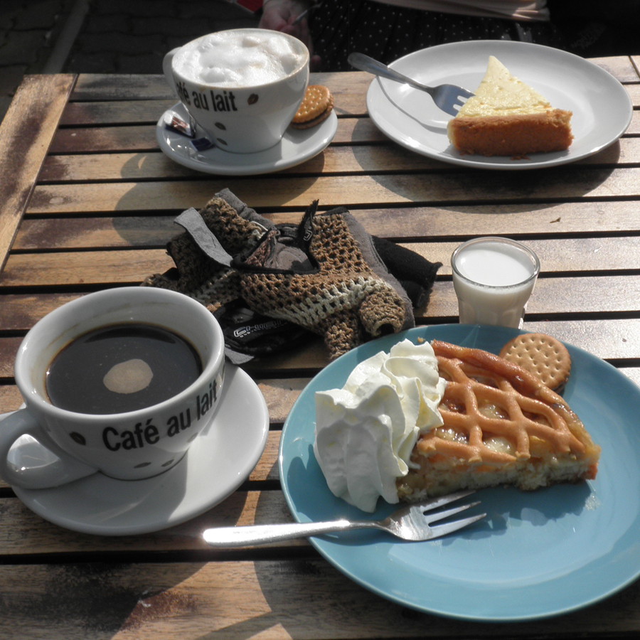 Eine Pause im Kleinen Haus in Linum. Frank und sein team macht nicht nur gutes Essen, sondern auch leckere Kuchen. Heute nehme ich Zitronenkuchen, gut. In der Kranich-Saison wird es voll hier. Aber jetzt kann man bequem Platz nehmen und die Pause geniessen.