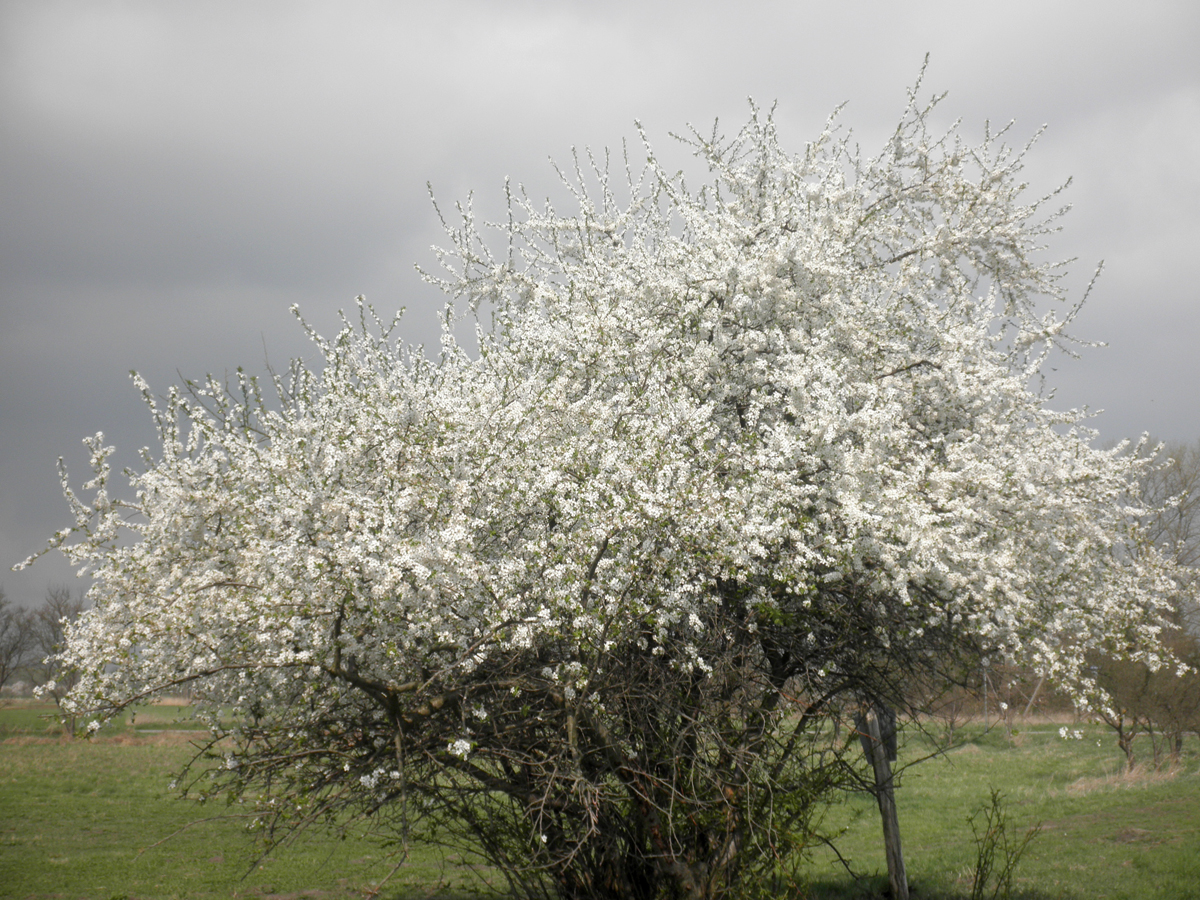 Im Gegensatz zum Kirschbaum verzweigt Mirabelle oft von ganz unten buschartig. Und der Stamm wird nicht so dick und hoch.
