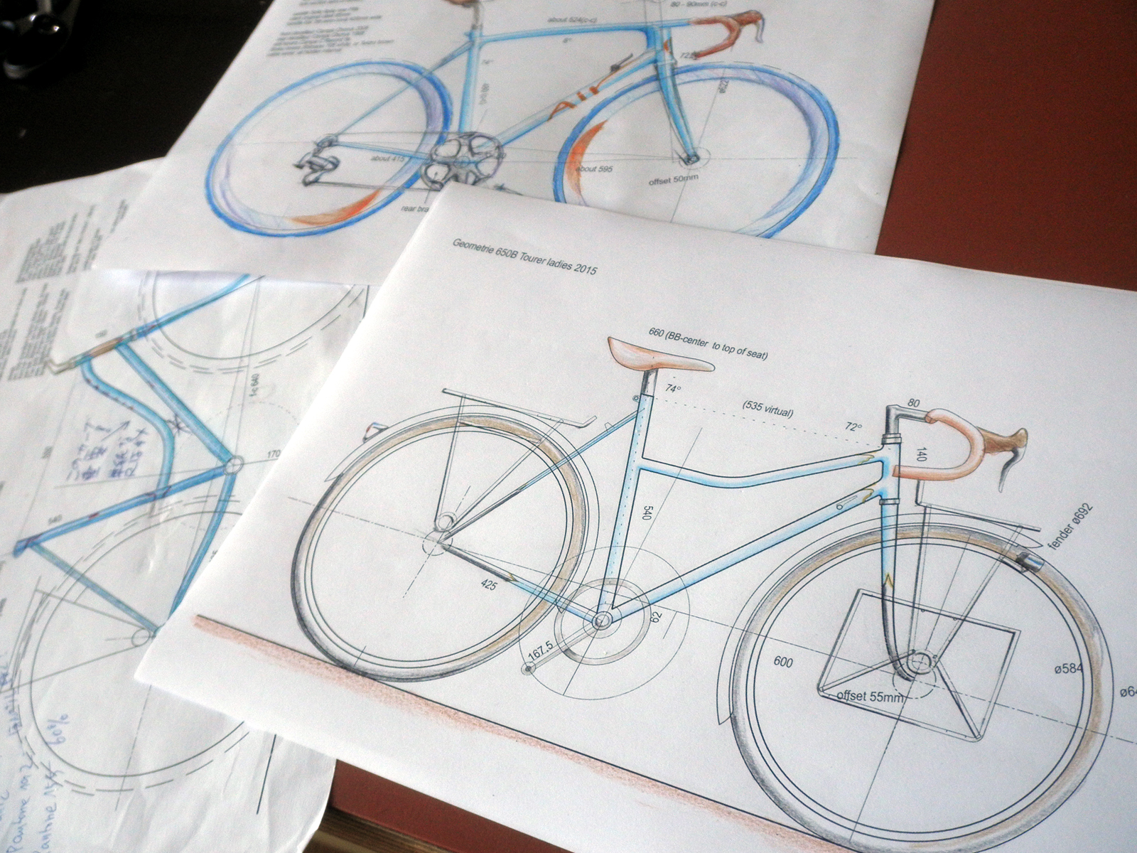 Mit der Angabe für Lackierer ist meine Atrbeit auf Papier für berliner fahrradschau beendet. Es begann im Oktober mit der Arbeit, Konzeption, Geometrie, Konstruktion, Gespräche mit dem Rahmenbauer, Teillieste, Detaillösungen, Beschriftung/Grafik/Farbgebung usw. Bis mein Rahmenbauer eine Nachricht sendet, „sie sind fertig!“ kann ich nur noch warten. Es ist wieder aufwendig geworden, mit handgeschnitzten Laminaten, mehrteiligen Gepäckträgern, Verchromung, mehrfarbiger Lackierung. Hoffentlich werden sie 3 Wochen vor messebeginn eintreffen, damit ich sie aufbauen und fotografieren kann. Bis dahin, ein wenig Luft holen und Anbauteile zusammenstellen. Paper work is done.