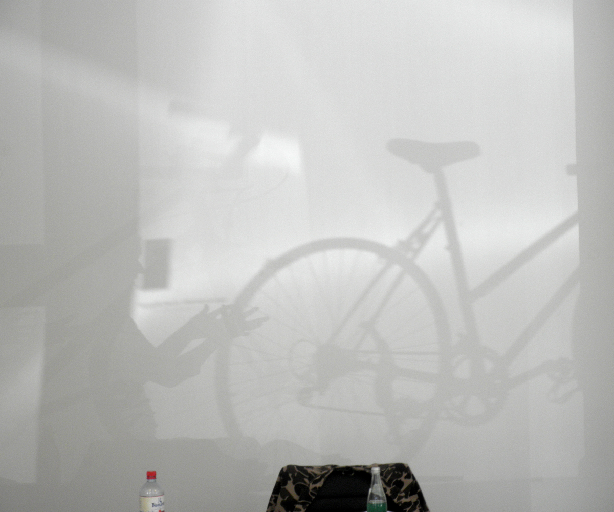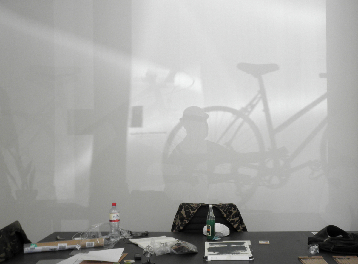 Am Tag lief die Vorbereitung ganz locker. Bemo arbeitet virtuell an einem Fahrradkurbel.