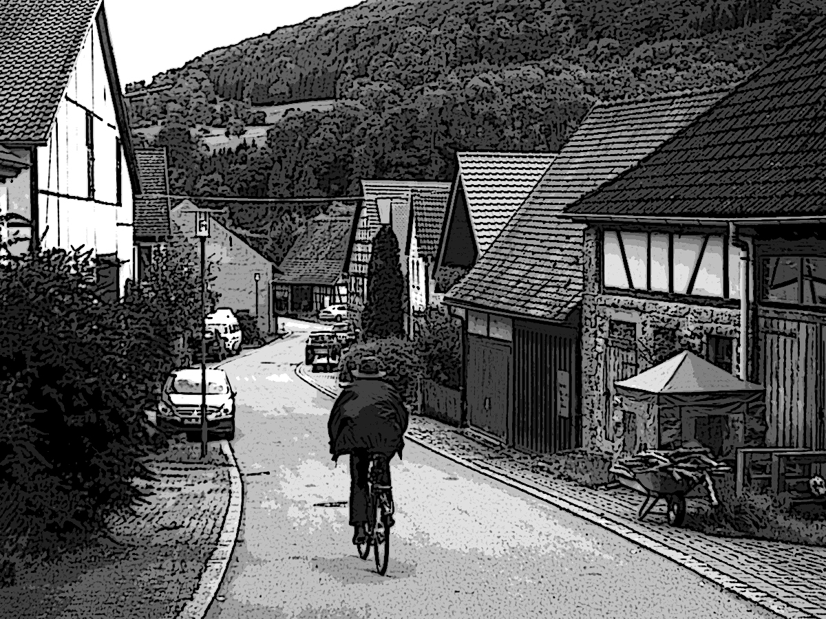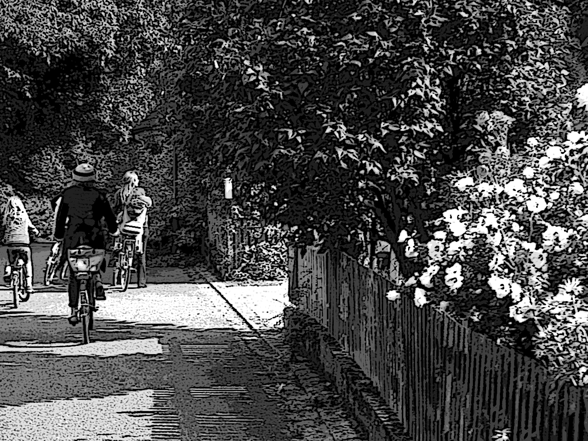 Gibt es heute jemanden, der das Gefühl von Unterwegssein auf Sattel so schön auf Bild bringen kann? Ich kenne nicht, aber vorstellbar wäre irgendeiner Manga-Zeichner. Ja, ein Fahrrad-Manga wäre super, nicht Rennen, nicht Muskeln, nicht cool sein, sondern voll Poesie und Melanchorie.