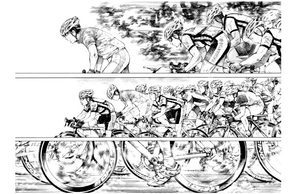Wunderschön sind die Zeichnungen von Frank Patterson. Seine Bilder sind voll vom Gefühl der Radreisen/Spazierfahren. Man spürt die Luft, Duft, den Wind und ganze Atmosphäre. Wenn ich seine Bilder anschaue, will ich am liebsten gleich auf den Sattel steigen und losradeln.