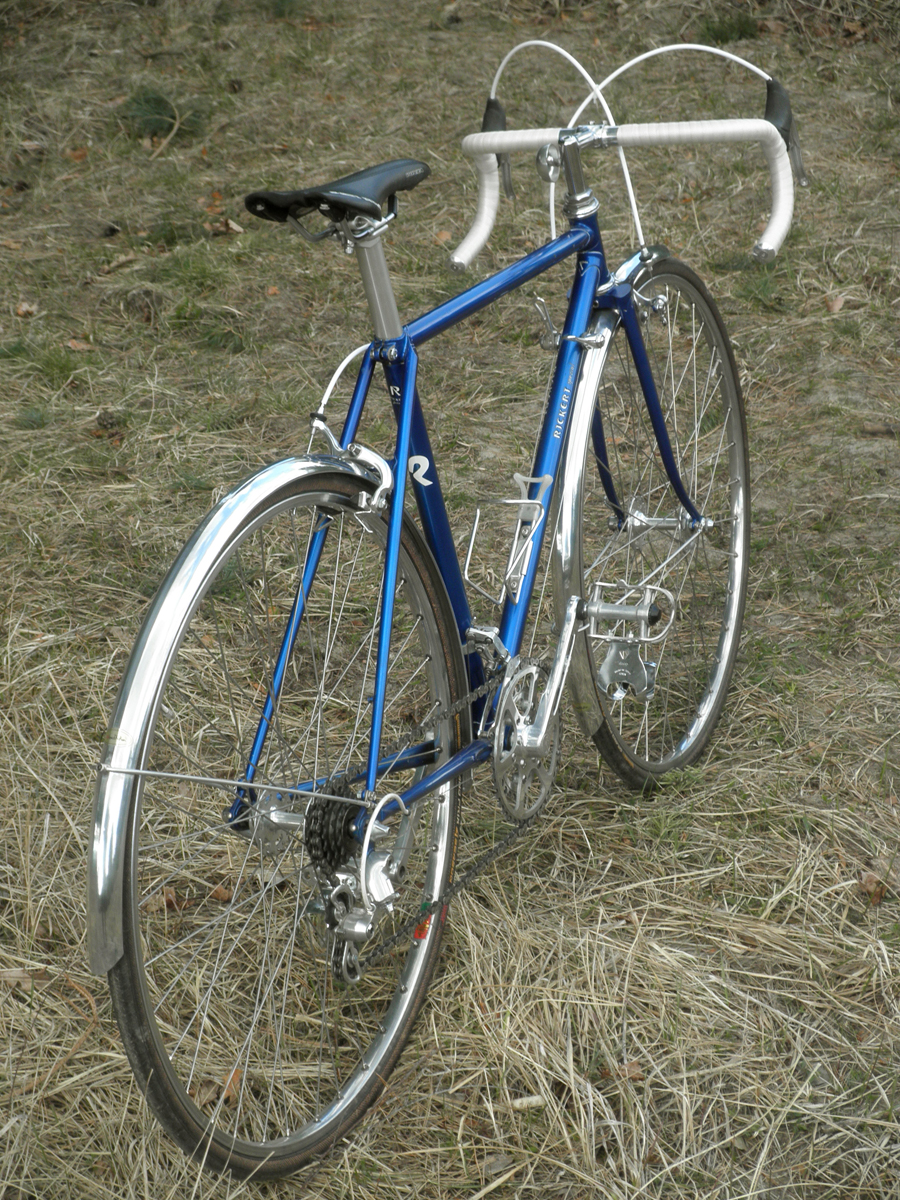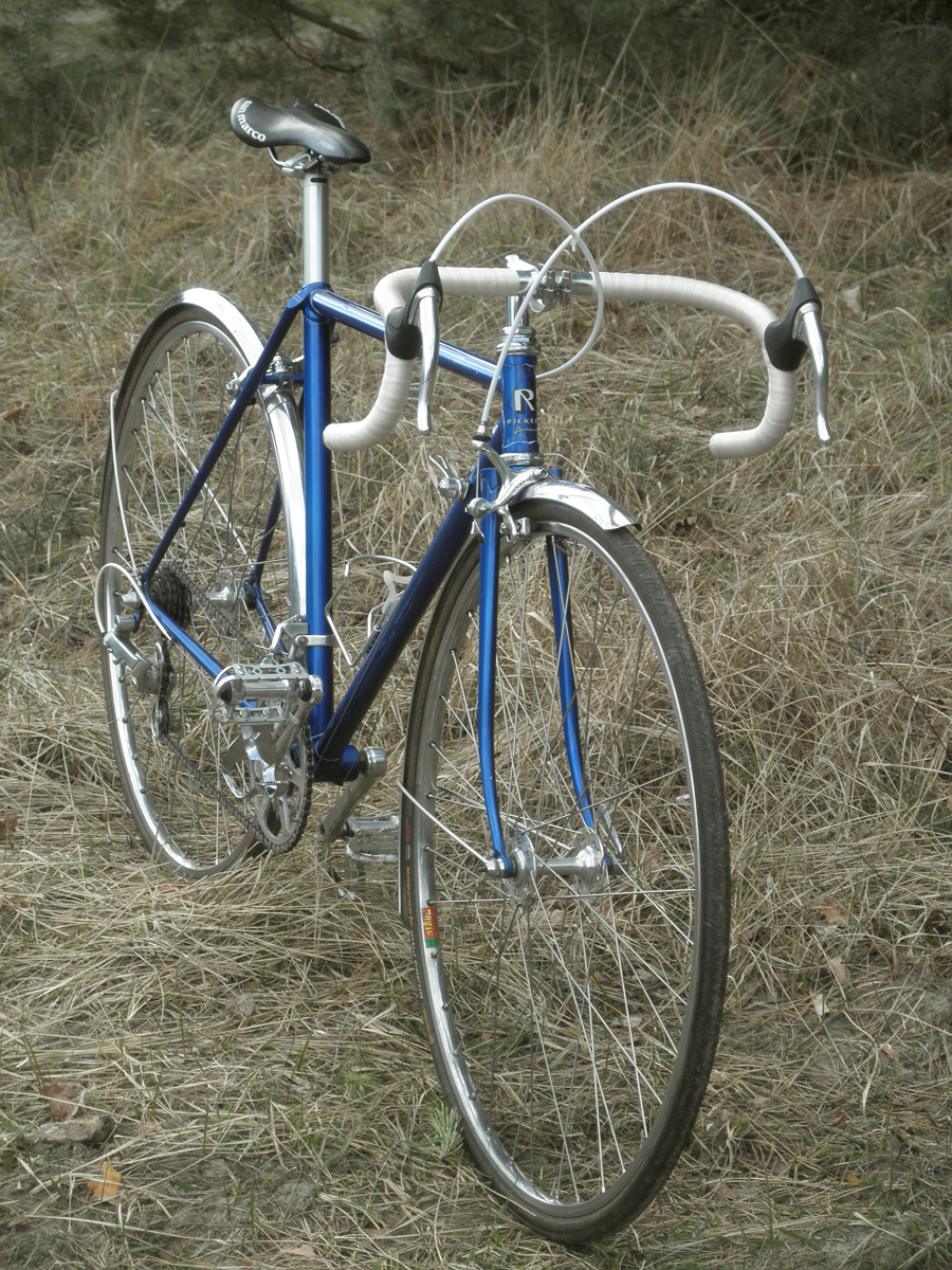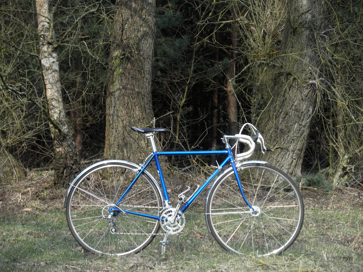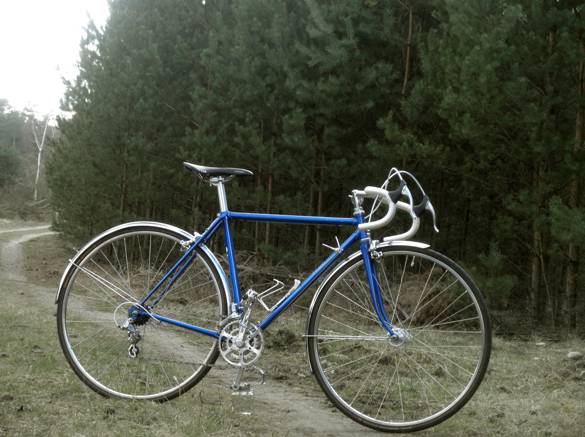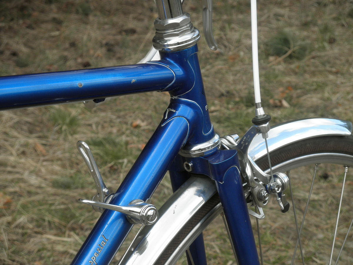 Antrieb/Transmission: Innenlager Shimano 105 113mm, Kurbel TA Cyclotouriste, Kettenblatt TA Cyclotouriste 46/30, Ritzel Suntour Perfect Free 5-fach 14/25, Schalthebel Simplex SLJ, Umwerfer Campa Victory, Schaltwerk Suntour Cyclone