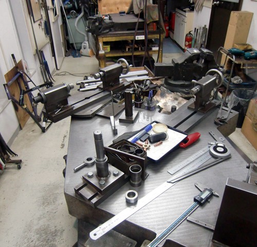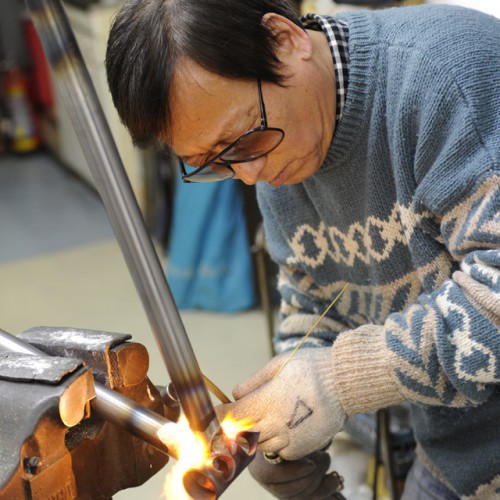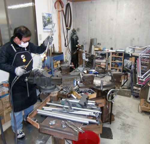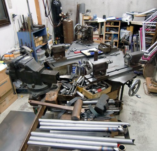 3 Fahrräder mit handgefertigten Rahmen werden präsentiert. Die Rahmen sind noch am Machen, in fernen Japan. Matsuda-san von LEVEL baut einen Rahmen für Stadtflitzer.