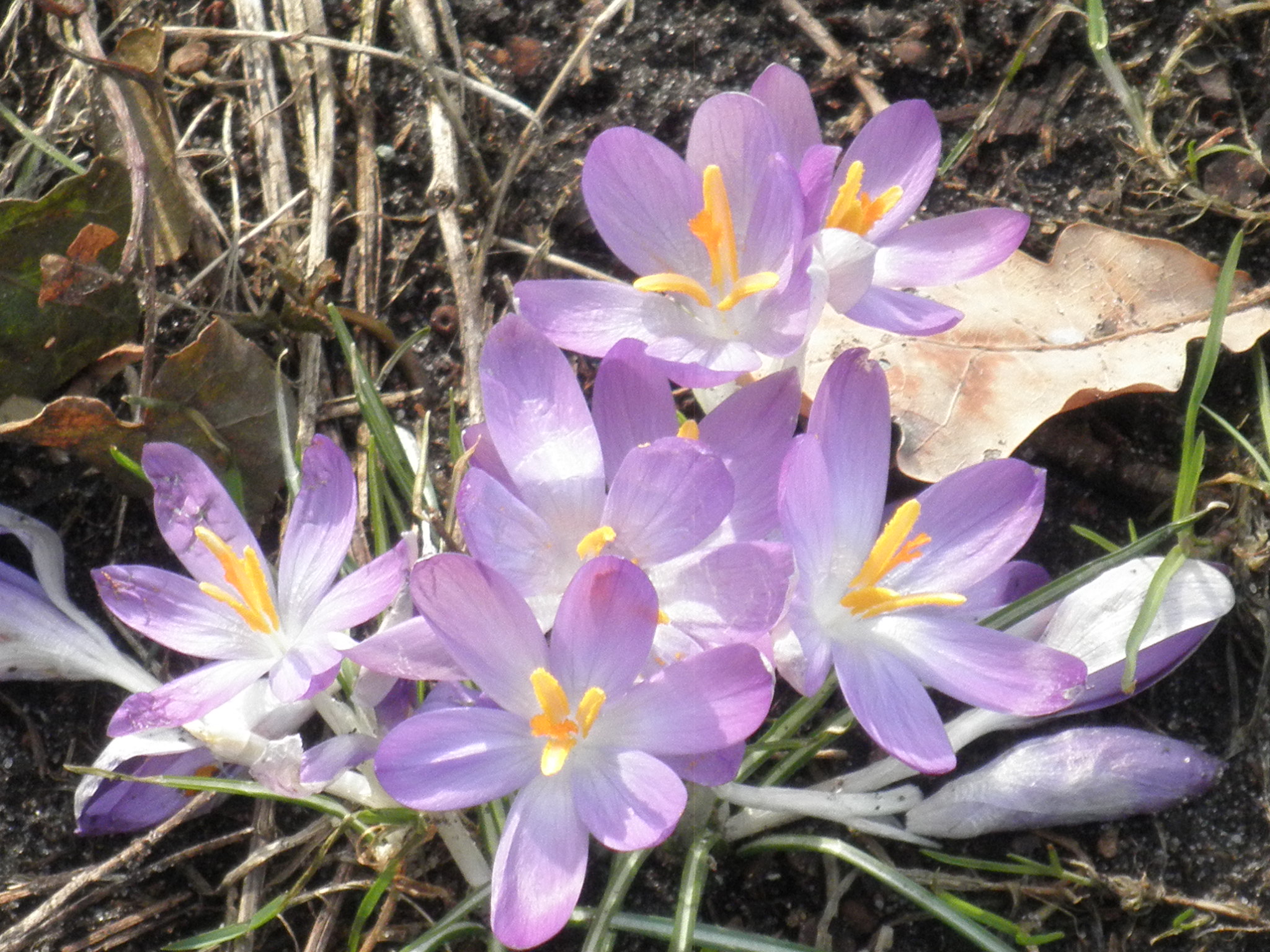 Manchmal zogen die Wolken vorrüber. Aber die Luft ist mild. Lungen erfreuen sich. Erste Grüne Farbe sprießen, Schnittlauch, überall. Meine Freundin pflücket ihn mit Wonne. Er ist noch recht frisch saftig, und schmeckt gut. Wir sahen auch Berliner Bärlauch. Er ist noch zu klein zum Pflücken. In einer Woche kann man ihn auch sammeln und geniessen. Krokusse verblühen langsam. Huflattich beginnt zu blühen.