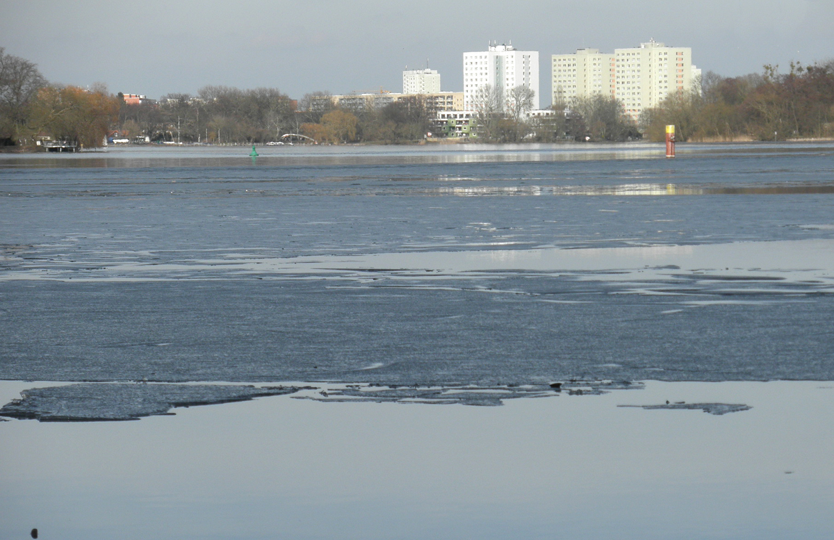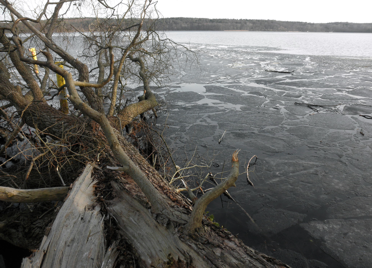 Noch winterlich aussehende Wasserlandschaft. Aber der Eis wird nur noch wegschmelzen.